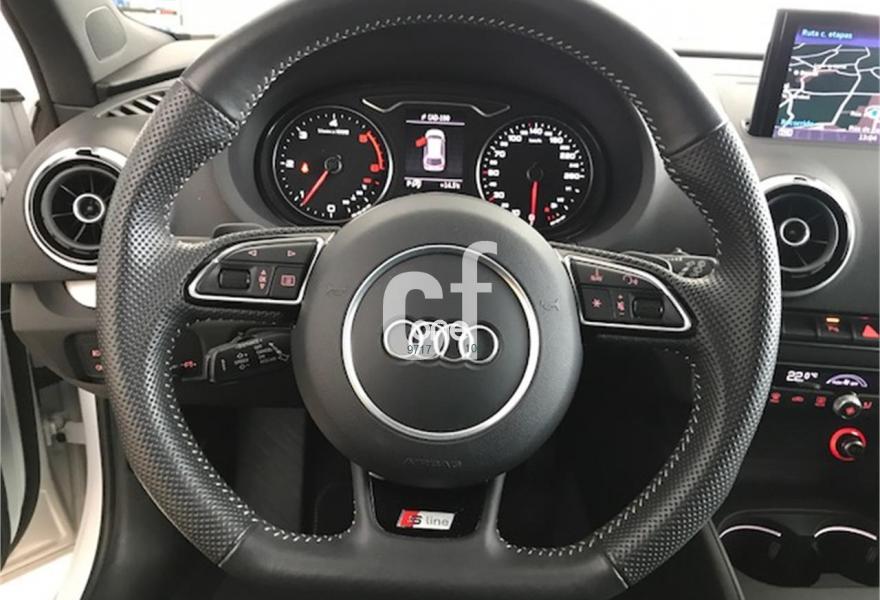 AUDI A3, Diesel, año 2014, 57900 kilómetros, color Blanco metalizado, precio 25990€. Asientos delanteros calefactables,Revestimiento interior del techo en negro,Tapicería en Alcantara/cuero con asientos delanteros deportivos,Equipo de sonido Audi Sound System,MMI navegación plus con MMI Touch,Volante deportivo de tres radios multifuncional achatado en la parte inferior,Cierre centralizado "Keyless Entry",Control automático de velocidad (Tempomat),Faros de xenón plus,Lavafaros,Luz adaptativa "Dynamic Adaptive Light",Paquete deportivo S line,Paquete exterior S line,Retrovisor interior antideslumbrante con sensor de luces y lluvia,Sistema de aviso de presión de los neumáticos,Techo corredizo eléctrico de cristal,Blanco Glaciar (metalizado),Llantas de aleación ligera 7,5Jx18 diseño 5 radios "Rotor" óptica de Titanio con neumáticos 225/40 R 18 (Audi exclusive),Retrovisores calefactables,Retrovisores calefactables y plegables electrónicamente. VENDIDO VENDIDO VENDIDO YA EN NUESTRAS INSTALACIONESEspectacular Audi A3 Sportback 2. 0 TDI AUT 150 S Line interior + exterior. Vehículo muy exclusivo en excelente estado, de reestreno, muy equipado, con todos los mantenimientos en concesionario oficial y libro. Equipamiento destacable: acabado s line + interior exterior, bixenon, navegación, techo panorámico, sensores de aparcamiento delantero y trasero, climatizador digital, espejos retráctiles, llantas (audi exclusive)en 18" de 5 brazos negros "rotor", volante de cuero sline achatado en parte inferior, equipo de sonido Audi, Automático, Asientos calefactados, Keyless. Pruébelo sin compromiso. Precio sujeto a financiación (26. 990 sin financiar). Incluye 2 años de garantía total con cobertura europea. Compromiso de devolución (10 días, 500 km). ven a probarlo sin compromiso a compostela car service, vía faday 21, polígono del Tambre. Santiago. .