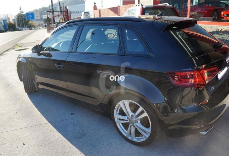 AUDI A3, Diesel, año 2013, 138000 kilómetros, color Negro , precio 18500€. Paquete de asistencia al conductor,Asientos delanteros calefactables,Asientos deportivos S delanteros,Audi exclusive Paquete de cuero Alcantara/ Nappa Fina,Cuero napa fina con grabado S line,Inserciones en aluminio Mistral,Tapicería en Alcantara/cuero con asientos delanteros deportivos,Equipo de sonido Audi Sound System,MMI navegación plus con MMI Touch,Paquete Connectivity,Paquete navegación (Navegador básico),Radio digital,Volante deportivo de tres radios multifuncional achatado en la parte inferior,Alcántara/Cuero Negro - Asientos Deportivos,Asistente para las luces de carretera,Audi connect,Control automático de velocidad (Tempomat),Faros completos en tecnología LED,Faros de xenón plus,Lavafaros,Paquete de iluminación interior,Paquete deportivo S line,Paquete estilo negro,Paquete exterior S line,Paquete portaobjetos,Retrovisor interior antideslumbrante con sensor de luces y lluvia,Sistema de aviso de presión de los neumáticos,Tela Biathlón/Cuero Negro,Volante deportivo de tres radios multifuncional,Barras laterales en el techo en colo negro,Llantas de aleación ligera 7,5Jx18 diseño 5 radios "Rotor" óptica de Titanio con neumáticos 225/40 R 18 (Audi exclusive),Negro Phantom (efecto perla),Pintura efecto perla,Preparación para el gancho de remolque,Retrovisores calefactables, plegables electrónicamente y con lado conductor con regulación antideslumbrante automática,Tornillos de rueda antirobo,Supsensión deportiva S line,Volante deportivo de tres radios multifuncional para el cambio S tronic achatado en la parte inferior,Airbags laterales traseros. A3 Sportback impecable, S-line interior y exterior. 150 Cv automático con levas en el volante, navegacion, multimedia MMI, volante multifunción Sline en cuero achatado, llantas aleación 18'', luces led, bi-xenon, bluetooth, asientos deportivos combinados cuero/tela con grabado Sline en asientos delanteros, control de velodicad..... /// 2 LLAVES /// LIBRO DE REVISONES /////.