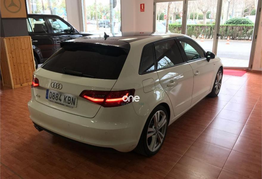 AUDI A3, Diesel, año 2013, 70000 kilómetros, color Blanco , precio 21000€. Paquete de asistencia al conductor,Paquete Vision,Asientos delanteros calefactables,Inserciones en aluminio Mistral,MMI navegación plus con MMI Touch,Volante deportivo de tres radios multifuncional achatado en la parte inferior,Equipo de sonido Audi Sound System,Alarma antirobo,Asistente para las luces de carretera,Control automático de velocidad (Tempomat),Faros de xenón plus,Lavafaros,Luz adaptativa "Dynamic Adaptive Light",Paquete deportivo S line,Volante deportivo de tres radios multifuncional,Cristales oscuros en parte trasera (quattro GmbH),Llantas de aleación ligera 7,5Jx17 diseño 5 brazos gemelos con neumáticos 225/45 R 17 (Audi exclusive),Volante deportivo de tres radios multifuncional para el cambio S tronic achatado en la parte inferior,APS. Sistema de aparcamiento acústico plus con indicación selectiva (delantero y trasero).
