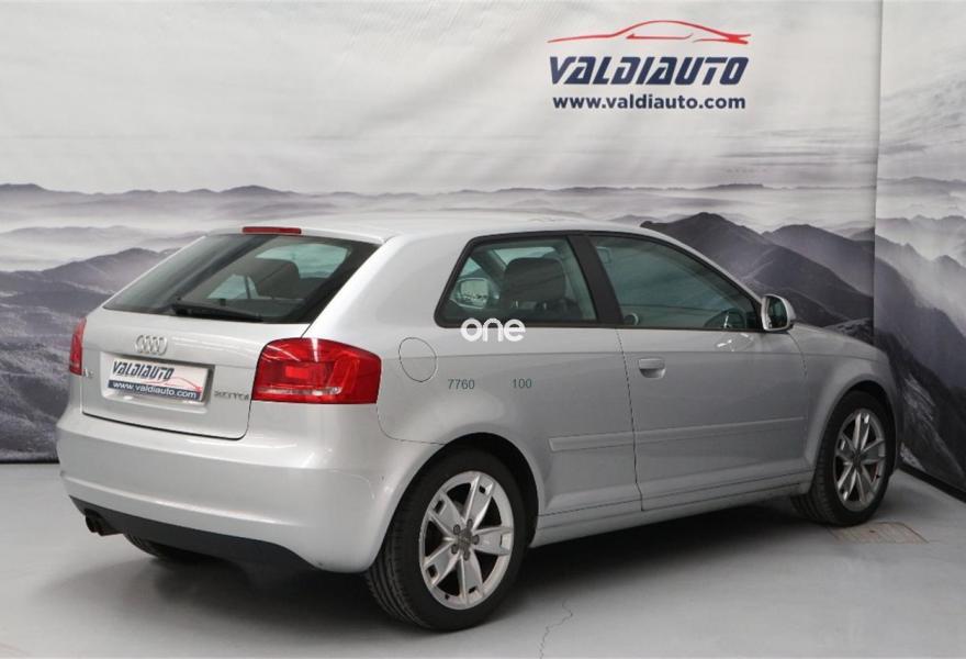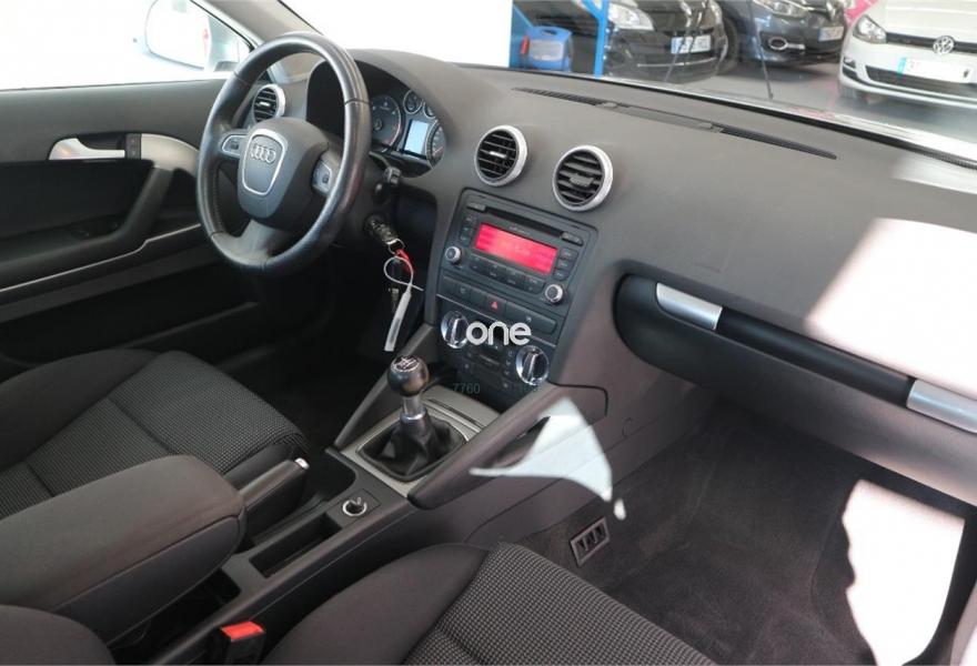 AUDI A3, Diesel, año 2009, 199000 kilómetros, color Gris / Plata metalizado, precio 7500€. APS. Sistema de aparcamiento acústico delantero y trasero con asistencia de aparcamiento,Consola para USB,Instalación básica de Bluetooth,Intercambiador de CD,Llantas de aleación ligera 7,5Jx17 diseño de 10 brazos en V con neumáticos 225/45 R 17,Suspensión deportiva. Audi A3 2.0TDI 140cv Sport año 2009, llanta 17", suspensión deportiva, volante de tres radios multifunción, cruise control, sensores....Correa de distribución hecha a los 173.000km, vehículo nacional con libro de revisiones en servicio oficial Audi, impecable estado..
