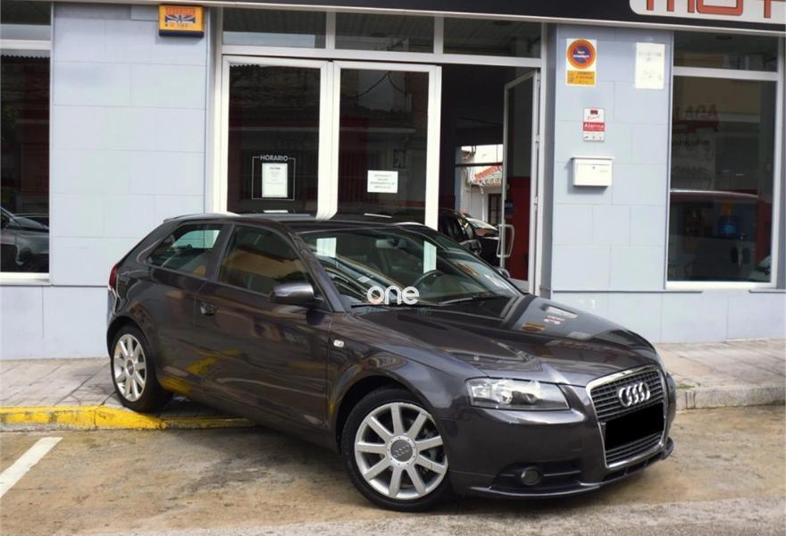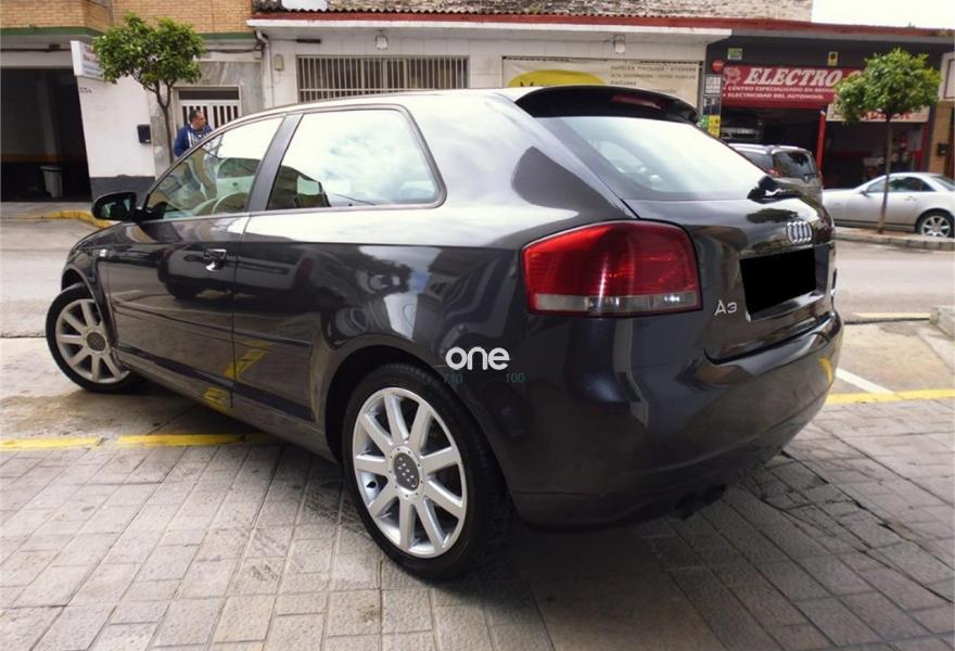 AUDI A3, Diesel, año 2008, 218000 kilómetros, color Gris / Plata (GRIS GRAFITO) metalizado, precio 6500€. Tapicería cuero Viena logo S line,Intercambiador de CD,Llantas de aleación ligera 7,5Jx17 diseño 9 brazos con neumáticos 225/45 R 17. Sline, Volante de cuero multifuncion, ordenador de abordo, asientos deportivos cuero y tela, llantas 17", climatizador bizona, bluetooth manos libres. garantia de 12 meses y transferencia incluida en el precio..