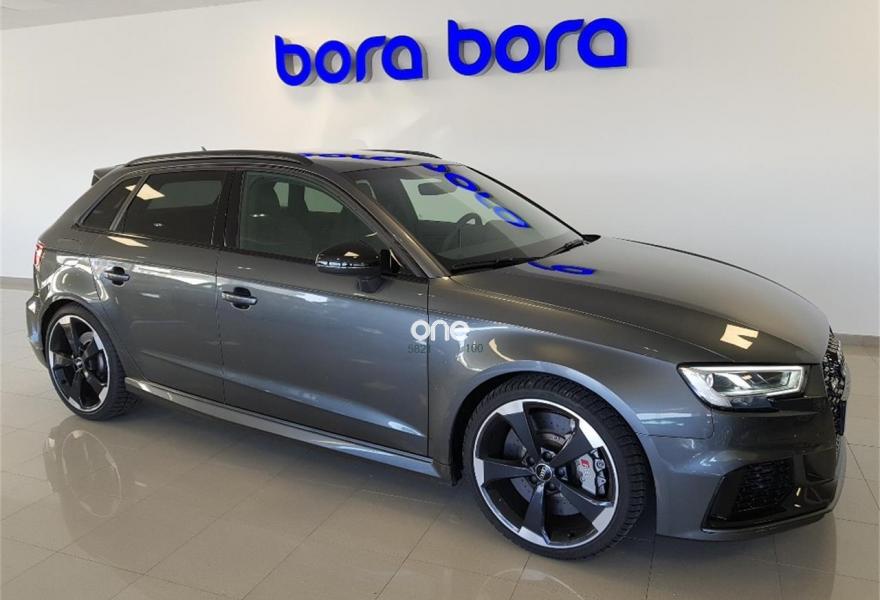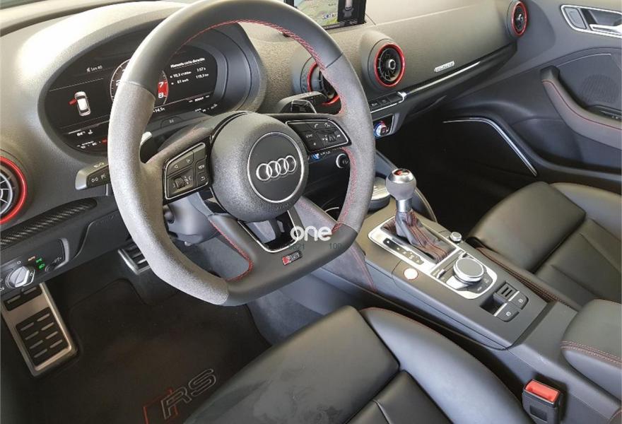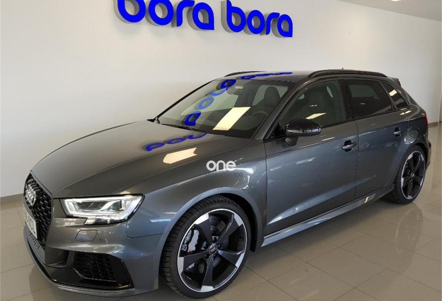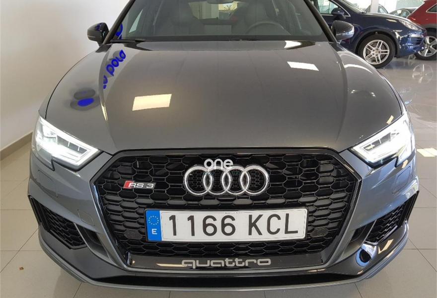 AUDI A3, Gasolina, año 2018, 25000 kilómetros, color Gris / Plata metalizado, precio 61900€. AUDI RS3 SPORTBACK 2018 400 CV SISTEMA DE NAVEGACION CUERO LLANTA 19 FRENOS CERAMIOCOS VELOCIDAD 280 SENSORES LUZ LLUVIA PARKING VARIAS INSERCIONES CARBONO. .