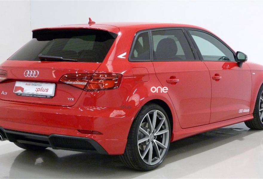 AUDI A3, Diesel, año 2018, 11900 kilómetros, color Rojo metalizado, precio 26300€. APS. Sistema de aparcamiento acústico plus con indicación selectiva y asistencia deaparcamiento,Paquete Black line,MMI navegación,Equipo de sonido Audi Sound System,Llave Comfort,Tela Rally Negro/Rojo,Volante deportivo de tres radios multifuncional achatado en la parte inferior,Rojo Tango (metalizado). Somos Concesionario oficial Audi.