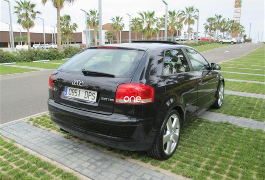 AUDI A3, Diesel, año 2005, 232000 kilómetros, color Negro (impecable estado) metalizado, precio 5990€. Paquete portaobjetos y maletero,Radio Symphony II,Paquete S line,Pintura metalizada,Supsension deportiva S line. En venta Audi a3 2.0TDI 140CV S-LINE 3 PUERTAS AÑO 2005 ,con 232.000km reales y demostrables, es nacional, techo solar,, climatizador, retrovisores eléctricos, esp, etc. el coche se encuentra en IMPECABLE estado, tanto por dentro como por fuera, esta como nuevo, Está al día de todo, neumáticos perfectos, casi nuevos, ITV al dia, revisiones al dia,todo lo que tiene funciona y es salido asi de fabrica, , como el primer dia, y si desea se puede lleva r a audi a comprobar .ACEPTAMOS SU VEHICULO COMO PARTE DE PAGO .SOLO DURANTE ESTA SEMANA, 12 MESES DE GARANTIA A NIVEL NACIONAL+ CAMBIO DE NOMBRE POR SOLO 490€.-.VISITE NUESTRAS INSTALACIONES DE LUNES A VIERNES DE 9H-13H Y 16:30H