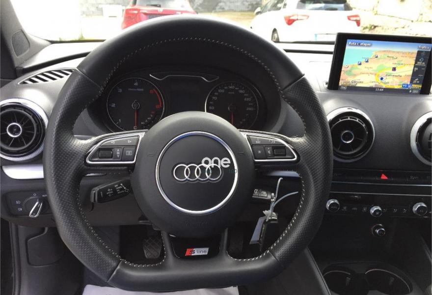 AUDI A3, Diesel, año 2014, 74950 kilómetros, color Negro metalizado, precio 23990€. Paquete de asistencia al conductor,Asientos delanteros calefactables,Asientos deportivos S delanteros,Tapicería tela "Biathlón" / Cuero,Revestimiento interior del techo en negro,Audi Phone Box,Equipo de sonido Bang & Oluffsen,MMI navegación plus con MMI Touch,Radio digital,Volante deportivo de tres radios multifuncional achatado en la parte inferior,Audi connect,Audi side assist (asistente de cambio de carril),Audi side assist + Audi active lane assist,Audi side assist + Audi active lane assist,Control automático de velocidad (Tempomat),Faros de xenón plus,Lavafaros,Luz adaptativa "Dynamic Adaptive Light",Paquete deportivo S line,Paquete estilo negro,Paquete exterior S line,Techo corredizo eléctrico de cristal,Tela Biathlón/Cuero Negro,Paquete portaobjetos,Alerón del techo ampliado,Barras laterales en el techo en colo negro,Cristales oscuros en parte trasera (quattro GmbH),Llantas de aleación ligera 7,5Jx18 diseño 5 radios "Rotor" óptica de Titanio con neumáticos 225/40 R 18 (Audi exclusive),Negro Phantom (efecto perla),Supsensión deportiva S line,Audi active lane assist (asistente mantenimiento carril),Audi pre sense front,Audi pre sense basic,APS. Sistema de aparcamiento acústico trasero. *** AUDI A3 SPORTBACK 2.0 TDI SLINE ***