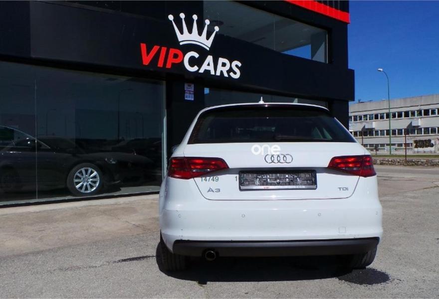 AUDI A3, Diesel, año 2015, 156000 kilómetros, color Blanco , precio 16500€. Paquete navegación (Navegador básico),Paquete de asistencia al conductor,MMI navegación plus con MMI Touch,Radio digital,Faros completos en tecnología LED,Paquete exterior S line,Blanco Amalfi,Llantas de aleación ligera 7,5Jx17 de 10 brazos diseño dinamico con neumáticos 225/45 R 17,Retrovisores calefactables, plegables electrónicamente y con lado conductor con regulación antideslumbrante automática,Suspension standard,Volante deportivo de tres radios multifuncional para el cambio S tronic,Airbags laterales traseros,APS. Sistema de aparcamiento acústico plus con indicación selectiva (delantero y trasero),Audi pre sense basic. Precio FINAL CON o SIN FINANCIACIÓN ( no inflamos los precios con financiaciónes abusivas)