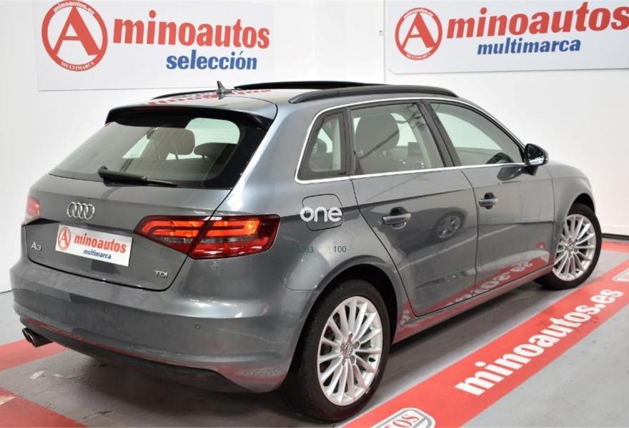 AUDI A3, Diesel, año 2014, 139000 kilómetros, color Gris / Plata (GRIS DAYTONA) metalizado, precio 17500€. Asientos delanteros calefactables,Tapicería de cuero Milano,MMI navegación plus con MMI Touch,Radio digital,Control de crucero adaptativo,Gris Daytona Audi exclusive (metalizada),APS. Sistema de aparcamiento acústico plus con indicación selectiva (delantero y trasero). ¡MinoAutos Multimarca! Empresa lider del sector en Galicia con mas de 150 vehículos en stock vende Audi A3 SportBack 2.0 TDI 150 CV.