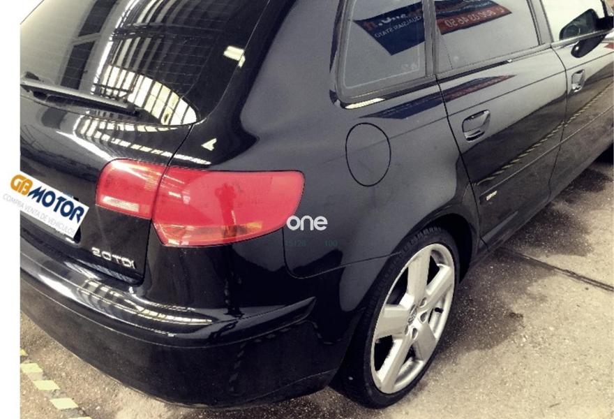 AUDI A3, Diesel, año 2008, 117000 kilómetros, color Negro metalizado, precio 11990€. Paquete S line completo (interior y exterior),Alcántara/Cuero Negro,Audi exclusive line,Sistema de navegación,Alarma antirobo,Aro del volante en cuero especial,Retrovisor interior antideslumbrante automático con brújula,Sistema de aviso de presión de los neumáticos,Llantas de aleación ligera 7,5Jx18 diseño 5 brazos con neumáticos 225/40 R 18,Paquete exterior S line,Supsension deportiva S line,Ayuda en acceso en pendiente. IMPECABLE AUDI A3 2.0 TDI S-LINE SPORTBACK SPORTPAKET PLUS, 170CV, DIESEL, AUTOMÁTICO, 6 MARCHAS, AÑO 2008, NEGRO METALIZADO, 5 PUERTAS, 5 PLAZAS, DIRECCIÓN ASISTIDA, ASIENTOS DEPORTIVOS, AIRBAG; CONDUCTOR, ACOMPAÑANTE, LATERAL Y PARA LA CABEZA. NAVEGADOR, ORDENADOR DE ABORDO, AIRE ACONDICIONADO AUTOMÁTICO, VOLANTE EN CUERO Y MULTIFUNCIÓN, LEVAS EN VOLANTE, ELEVALUNAS ELÉCTRICO, ABS, EDS, ESP, INMOVILIZADOR, RETROVISORES ELÉCTRICOS, CIERRE CENTRALIZADO, LLANTA 18´, ASR, PAQUETE S-LINE INTERIOR Y EXTERIOR. LIBRO MANTENIMIENTO, 1 LLAVE.