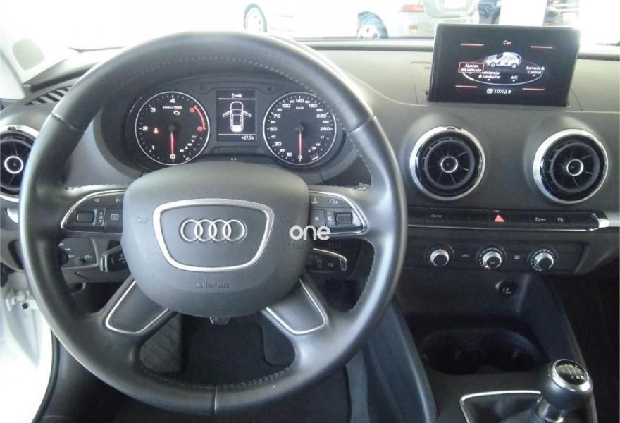 AUDI A3, Diesel, año 2015, 46000 kilómetros, color Blanco , precio 15990€. Instalación básica manos libres (Bluetooth) para teléfono móvil,Volante de cuatro radios multifuncional de cuero para cambio manual,Control automático de velocidad (Tempomat),Faros de xenón plus,Paquete exterior S line,Retrovisor interior antideslumbrante con sensor de luces y lluvia,Sensor de luz y lluvia,Volante en cuero Audi exclusive,Blanco Amalfi,Llantas de aleación ligera 7,5Jx17 diseño de 5 brazos dobles "Kinetic" con neumáticos 225/45 R 17. - Vehículo procedente de Audi oficial Gandia, perfecto estado, un solo propietario particular, revisiones al día en servicio oficial Audi, 6 velocidades, acabado S-Line, ordenador de viaje, aire acondicionado, bluetooth, bixenon, sensor luces y lluvia, retrovisor electrocrómico, luces led diurnas, volante multifunción en piel, control cruise, start & stop, reposabrazos, sensor presión neumáticos, faros antiniebla, llantas 17 Audi, ABS, ESP, ISOFIX.