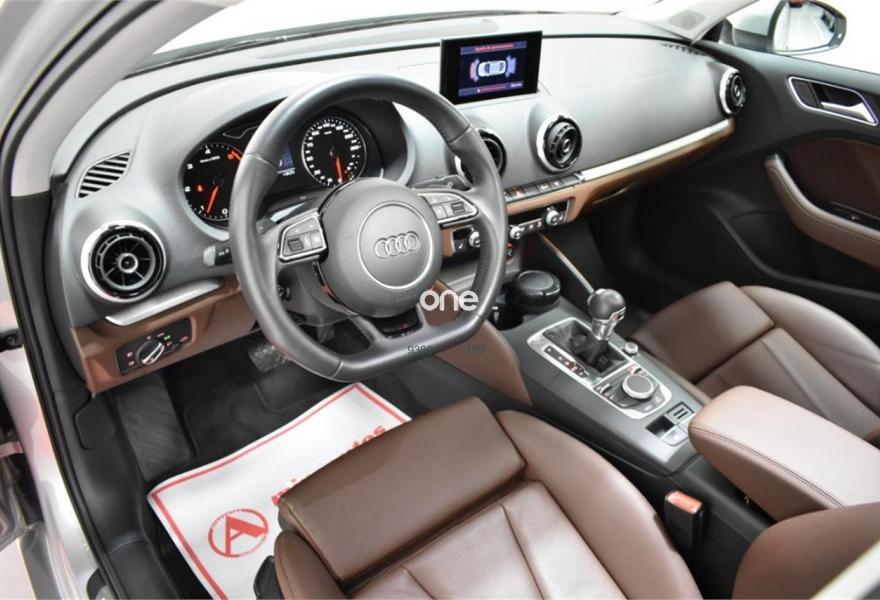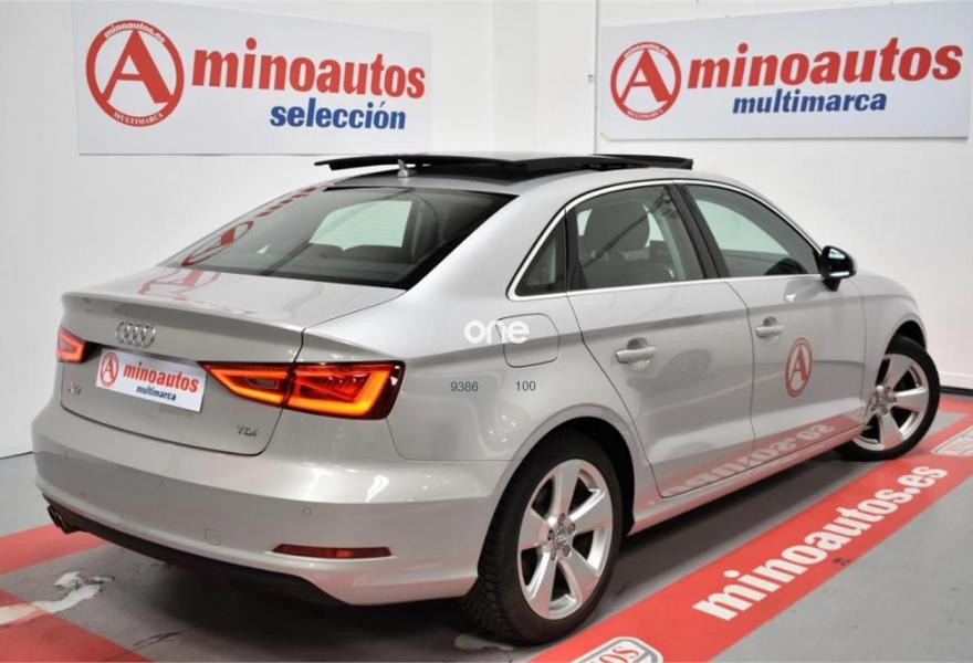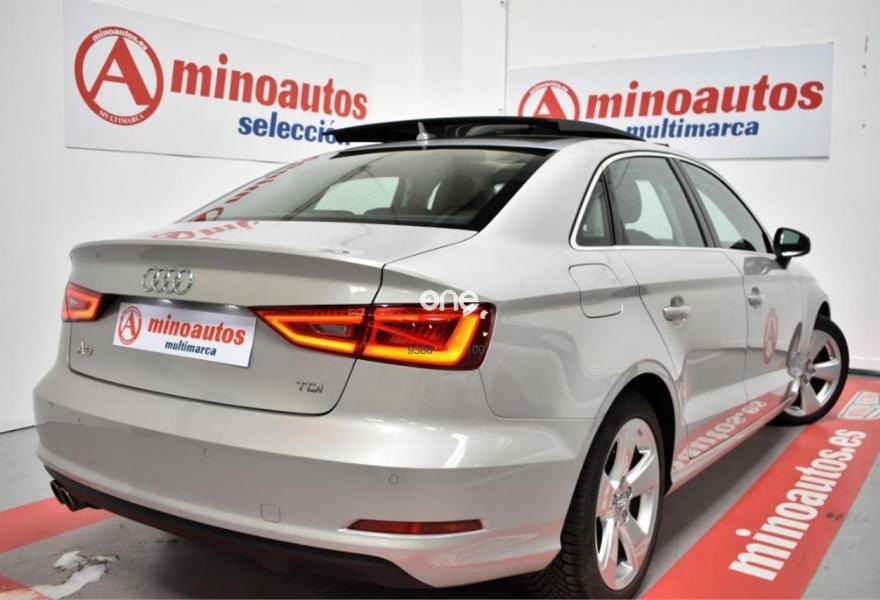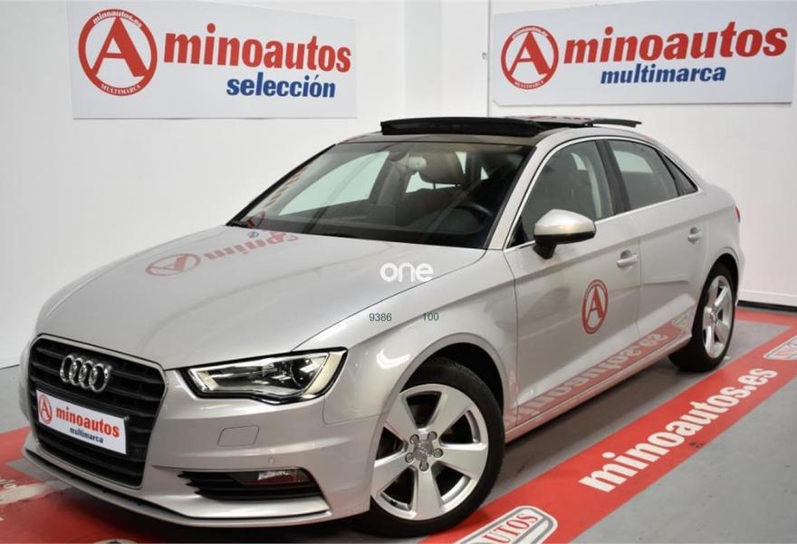 AUDI A3, Diesel, año 2014, 80000 kilómetros, color Gris / Plata (2Z - GRIS LOTUS METALIZADO) metalizado, precio 22500€. Asientos delanteros calefactables,MMI navegación plus con MMI Touch,Equipo de sonido Audi Sound System,Volante deportivo de tres radios multifuncional achatado en la parte inferior,Paquete navegación (Navegador básico),Cuero Milano Marrón Castaño - Asientos Deportivos,Faros de xenón plus,Paquete deportivo S line,Sistema de aviso de presión de los neumáticos,Techo corredizo eléctrico de cristal,Tapicería de cuero Milano,Gris Lotus (metalizado),Retrovisores calefactables y plegables electrónicamente,Supsensión deportiva S line,Volante deportivo de tres radios multifuncional para el cambio S tronic achatado en la parte inferior,APS. Sistema de aparcamiento acústico plus con indicación selectiva (delantero y trasero). ¡MinoAutos Multimarca! Empresa lider del sector en Galicia con mas de 150 vehículos en stock vende Audi A3 Sedan SLine 2.0 TDI 150 CV STronic.