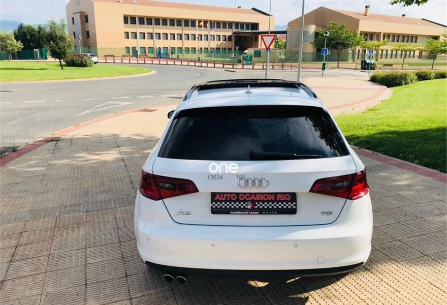 AUDI A3, Diesel, año 2013, 96000 kilómetros, color Blanco metalizado, precio 19900€. Paquete de asistencia al conductor,Asientos delanteros calefactables,Asientos deportivos S delanteros,Audi exclusive Paquete de cuero Alcantara/ Nappa Fina,Inserciones en aluminio Mistral,Regulación lumbar eléctrica de los asientos delanteros,Tapicería en Alcantara/cuero con asientos delanteros deportivos,Equipo de sonido Audi Sound System,MMI navegación plus con MMI Touch,Paquete Connectivity,Radio digital,Dispositivo del gancho de remolque,Alarma antirobo,Asistente para las luces de carretera,Audi connect,Audi side assist (asistente de cambio de carril),Control de crucero adaptativo,Dirección dinámica,Faros completos en tecnología LED,Faros de xenón plus,Lavafaros,Luz adaptativa "Dynamic Adaptive Light",Paquete deportivo S line,Regulación adaptativa del alcance de las luces,Retrovisor interior antideslumbrante con sensor de luces y lluvia,Sistema de aviso de presión de los neumáticos,Techo corredizo eléctrico de cristal,Volante deportivo de tres radios multifuncional,Barras laterales en el techo en colo negro,Blanco Glaciar (metalizado),Llantas de aleación ligera 7,5Jx18 diseño 5 radios "Rotor" óptica de Titanio con neumáticos 225/40 R 18 (Audi exclusive),Retrovisores calefactables,Supsensión deportiva S line,Volante deportivo de tres radios multifuncional para el cambio S tronic,Airbags laterales traseros,APS. Sistema de aparcamiento acústico plus con indicación selectiva y asistencia deaparcamiento,Audi Hold Assist,Cámara trasera. vehiculo en perfecto estado, un solo propietario, libro mantenimineto oficial audi, bixenom adaptativos, sensor aparcamiento del-tras con camara marcha atras, techo panoramico practicable, volante multifuncion, control velocidad con asistente al conductor, tapiceria piel con asientos calefactados, climatizador bizona, cambio automatico s-line, navegador mmi, eqipo sonido hi-fi, bola remolque transferido y un año de garantia, financiacion a su medida.