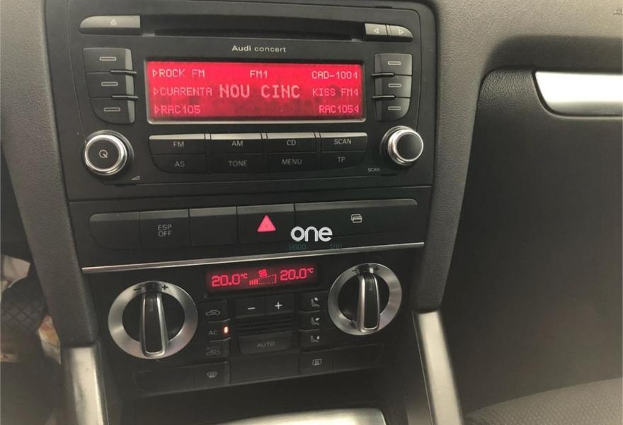 AUDI A3, Gasolina, año 2009, 106000 kilómetros, color Blanco metalizado, precio 11500€. Tapicería de cuero "Vienna" para asientos delanteros deportivos,Tela Frecuency Negro,Cuero Vienna Negro - Asientos Deportivos,Radio Concert,Alarma antirobo,Aro del volante en cuero especial,Elementos de mando en cuero especial,Paquete de iluminación interior,Paquete estilo color negro,Protección solar para la luna trasera,Volante de cuatro radios multifuncional de cuero para cambio manual,Barras laterales en el techo pulidas,Blanco Ibis,Llantas de aleación ligera 7,5Jx17 diseño 5 brazos con neumáticos 225/45 R 17 (Audi exclusive),Paquete exterior S line,Pintura metalizada,Rueda de repuesto de tamaño reducido,Sin inscripción trasera de modelo y cilindrada,Tornillos de rueda antirobo,Supsension deportiva S line,Suspensión deportiva. Espectacular A3 Sportback con paquete S-LINE. Todo un deportivo con la comodidad y fiabilidad que ofrece Audi.