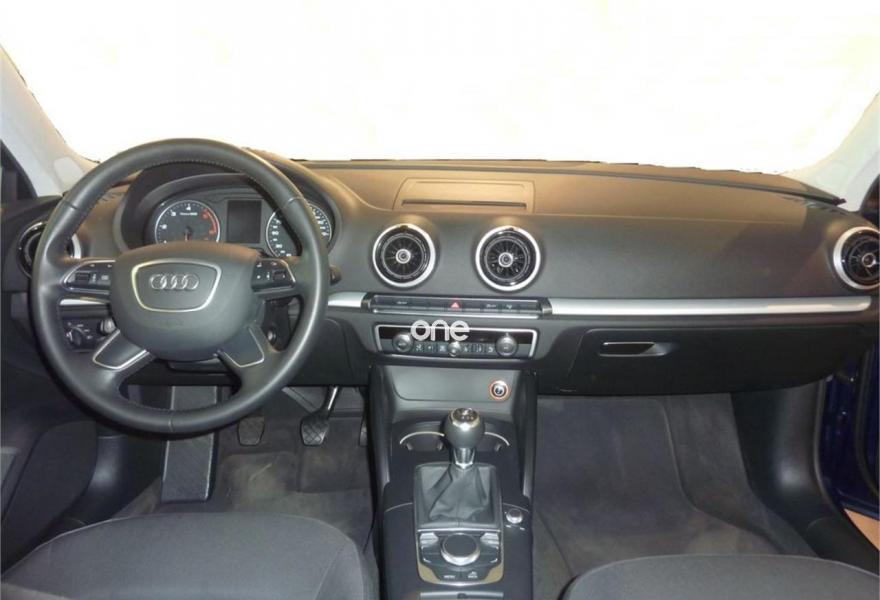 AUDI A3, Diesel, año 2016, 27611 kilómetros, color Azul metalizado, precio 17500€. Paquete Vision,Climatizador Comfort Plus,Volante de cuatro radios multifuncional de cuero para cambio manual,Equipo de sonido Audi Sound System. Precio financiado: Ahorro (financiando con Audi Financial Services)