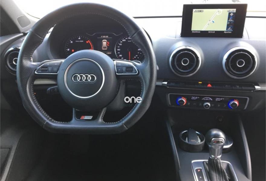 AUDI A3, Diesel, año 2015, 139000 kilómetros, color Negro , precio 19600€. Asientos deportivos S delanteros,Inserciones en aluminio Mistral,Tapicería en Alcantara/cuero S line,Tapicería en cuero napa fina con grabado S line,Equipo de sonido Audi Sound System,8 altavoces (pasivos),Instalación básica manos libres (Bluetooth) para teléfono móvil,MMI navegación plus con MMI Touch,Volante deportivo de tres radios multifuncional achatado en la parte inferior,Control automático de velocidad (Tempomat),Faros de xenón plus,Lavafaros,Paquete deportivo S line,Paquete exterior S line,Retrovisor interior antideslumbrante con sensor de luces y lluvia,Llantas de aleación ligera 7,5Jx18 diseño de 5 radios paralelos parcialmente pulidos con neumáticos 225/40 R 18,Negro Brillante,Supsensión deportiva S line,Volante deportivo de tres radios multifuncional para el cambio S tronic achatado en la parte inferior. Autos Villasenin vende Audi A3 TDI con paquete deportivo SLINE exterior e interior, llanta 18, asientos deportivos cuero-alcántara, suspension deportiva, cambio automatico STRONIC de 7 velocidades con levas en el volante, faros bixenon con led diurno, sensores de aparcamiento delanteros y traseros, retrovisores electricos, control de velocidad, sistema de navegación. . . Se entrga con mantenimiento al dia, transferido y con garantía de 1 año. .