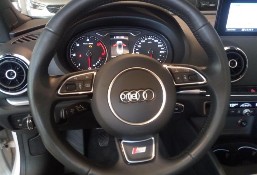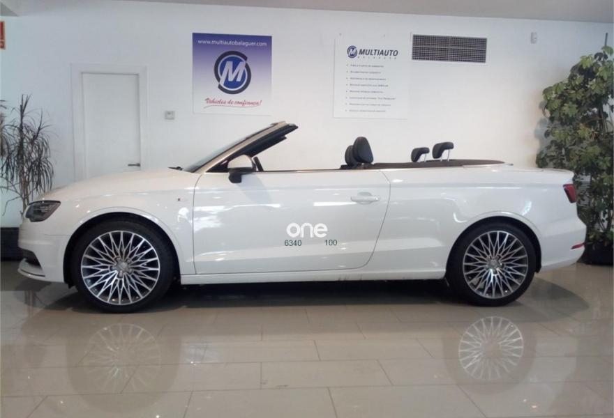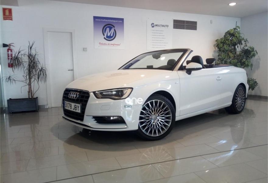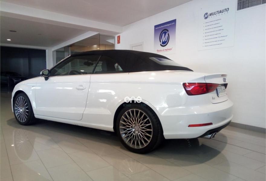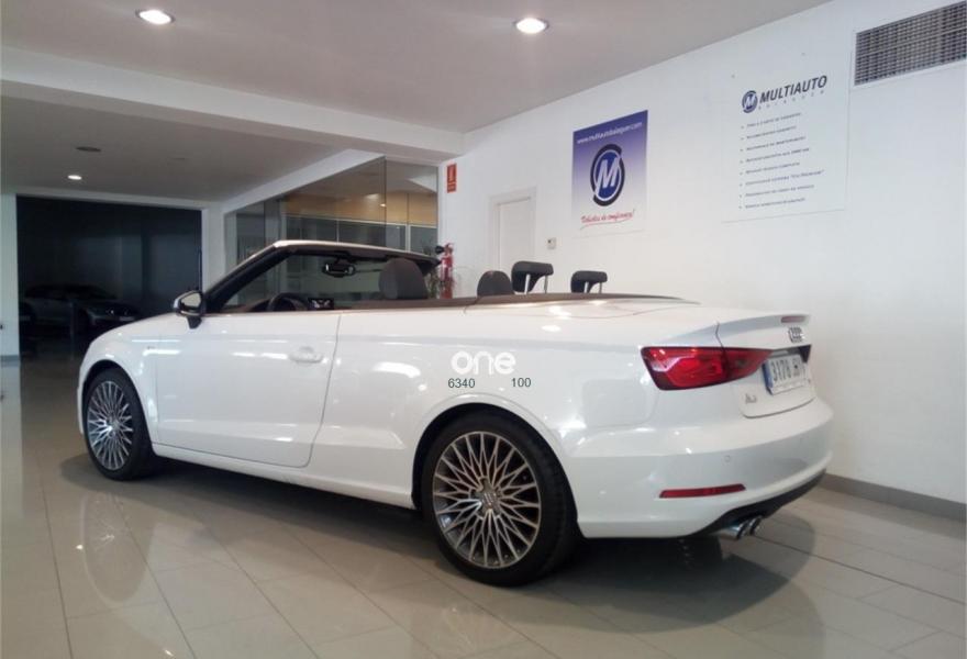 AUDI A3, Diesel, año 2015, 28947 kilómetros, color Blanco metalizado, precio 23750€. Paquete de iluminación interior,Capota acústica,Inserciones en aluminio Mistral,Deflector cortavientos,APS. Sistema de aparcamiento acústico trasero,Control automático de velocidad (Tempomat),Lavafaros,Paquete interior fumador,Equipo de sonido Audi Sound System,Llantas de aleación ligera 8Jx18 diseño de estrella multibrazo parcialmente pulida con neumáticos 225/45 R 18,Paquete navegación (Navegador básico),Retrovisor interior antideslumbrante con sensor de luces y lluvia,Paquete portaobjetos. Sus puntos más fuertes son las calidades interiores y la comodidad.