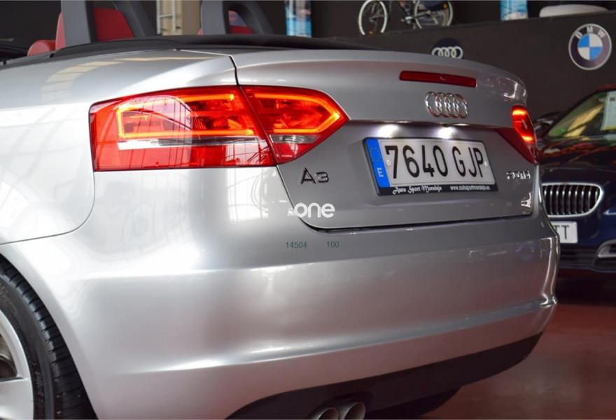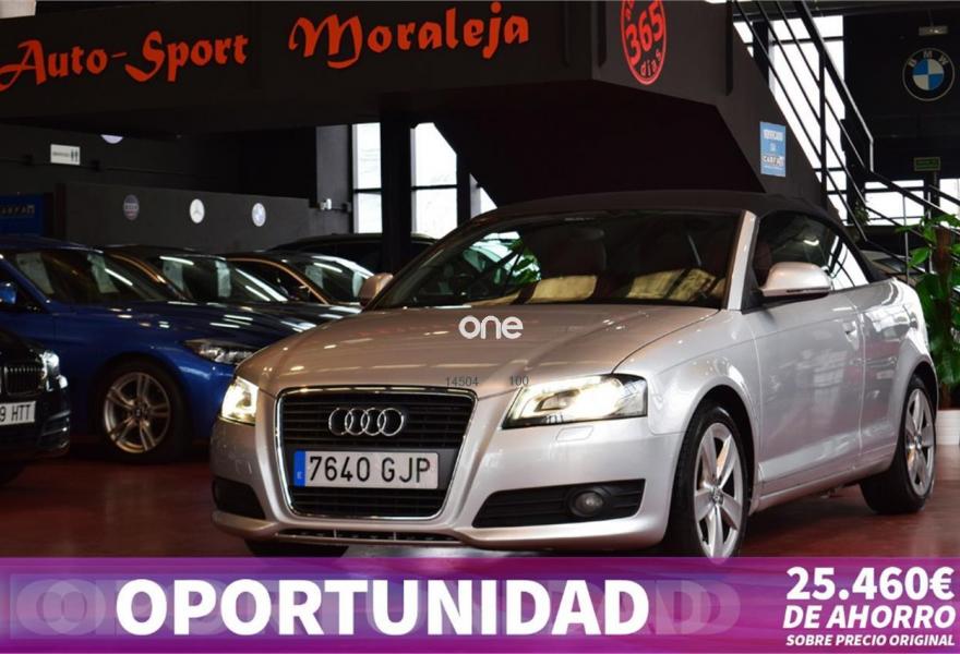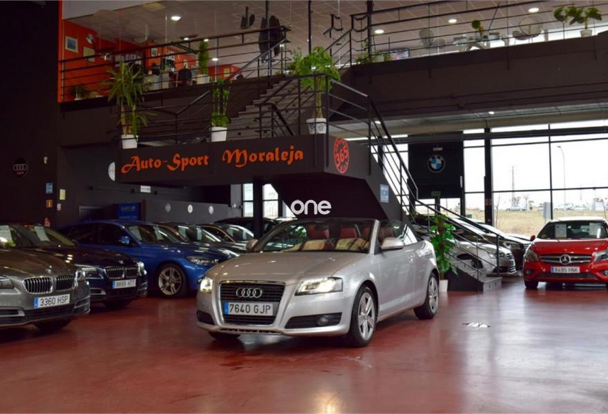 AUDI A3, Diesel, año 2008, 139200 kilómetros, color Gris / Plata (Hielo) metalizado, precio 11600€. Cuero Napa Fina Negro - Techo Gris Claro - Asientos Deportivos,Tapicería de cuero "Vienna" para asientos delanteros deportivos,Tapicería en Alcantara/cuero con asientos delanteros deportivos,Preinstalación de teléfono móvil con kit manos libres (Bluetooth) en apoyabrazos delantero,Alarma antirobo,Capota Negra,Faros de xenón Plus,Lavafaros,Llantas de aleación ligera 7,5Jx17 diseño de 5 radios Dynamic con neumáticos 225/45 R 17,Pintura metalizada,Plata Hielo (metalizado),Fijación para asientos infantiles ISOFIX y desactivador airbag del acompañante. Vehículo Nacional. Libro de revisiones con última revisión en Taller Autorizado (Citroen Auracar) el 29/05/2015 a los 90.000Kms. En el precio se incluye: IVA (REBU), Transferencia y Garantía de un año (Motor y Caja de Cambios). La Certificación de Kilómetros y que no ha sufrido golpes estructurales, queda reflejado en el Contrato. Todos nuestros vehículos disponen de un informe independiente y objetivo // Abierto 365 días - Web: autosportmor//