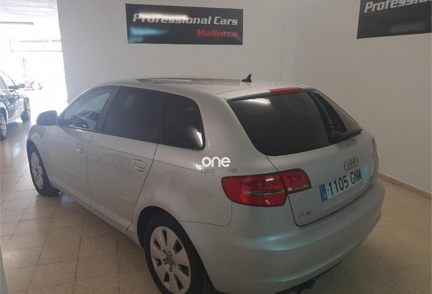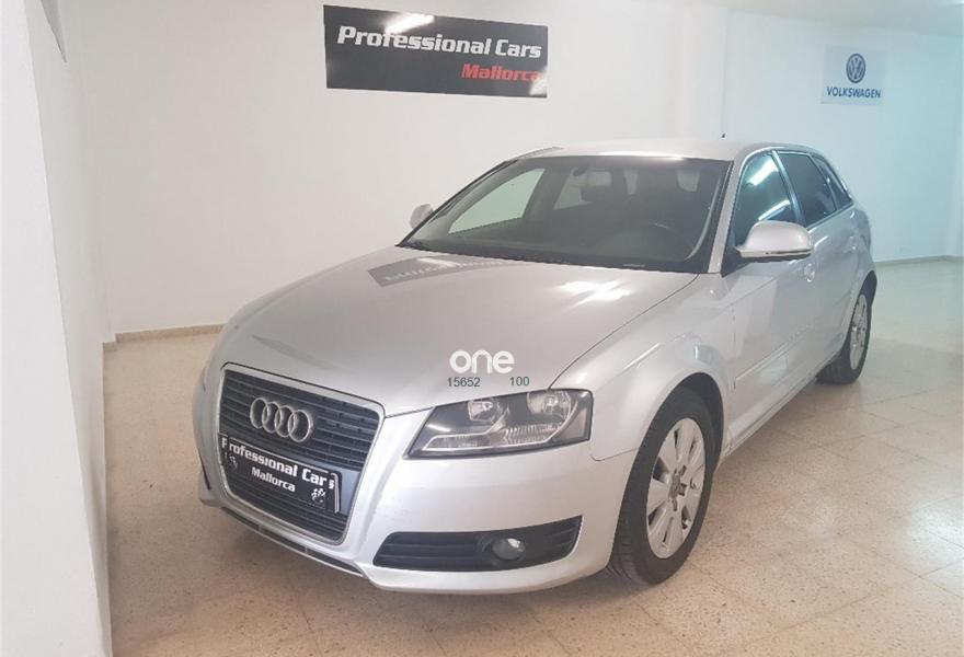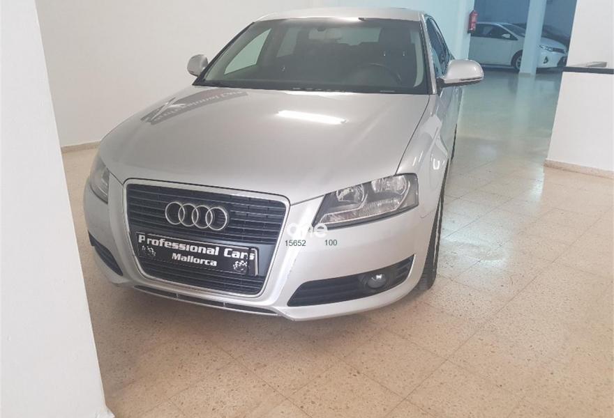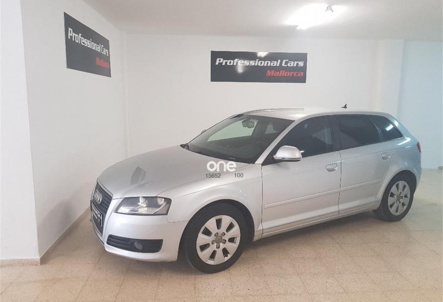 Profesional cars Mallorca financiación 100% a su medida se vende fantástico Audi A3 Sportback de única propietaria con dos llaves navegador equipo de serie incorporado DVD sensor de aparcamiento trasero volante multifunción todos los mantenimientos hechos al día correa distribución recién cambiada neumáticos delanteros y traseros al 90% se puede venir a ver y probar en calle Lledoner 23 a. Color plata.