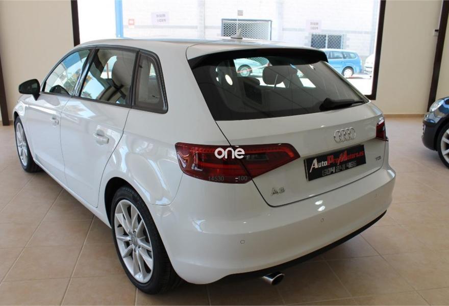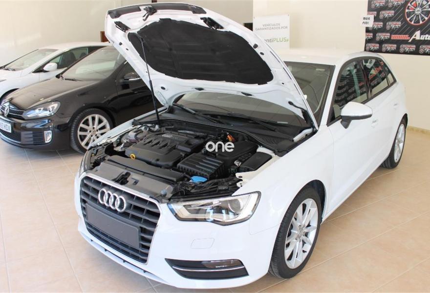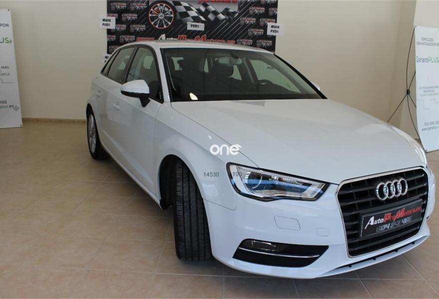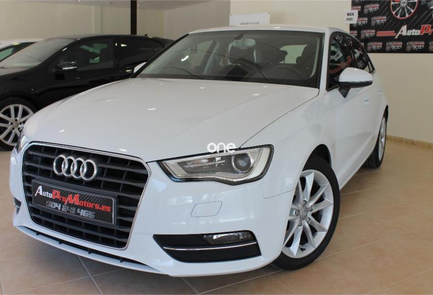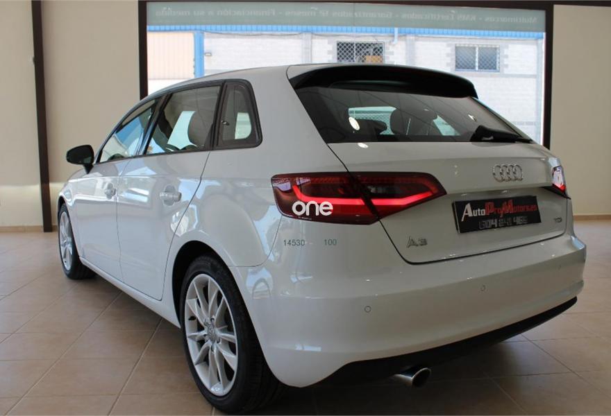 AUDI A3, Diesel, año 2014, 115000 kilómetros, color Blanco metalizado, precio 17200€. Audi Hold Assist,APS. Sistema de aparcamiento acústico trasero,Volante deportivo de tres radios multifuncional para el cambio S tronic,Blanco Glaciar (metalizado),Llantas de aleación ligera 7,5Jx17 diseño de 5 brazos dobles "Kinetic" con neumáticos 225/45 R 17,Pintura metalizada,Retrovisores calefactables,Retrovisores calefactables y plegables electrónicamente,Alarma antirobo,Cierre centralizado "Keyless Entry",Control automático de velocidad (Tempomat),Dirección dinámica,Faros completos en tecnología LED,Faros de xenón plus,Interfaz para el sistema de localización de vehículos,Lavafaros,Retrovisor interior antideslumbrante con sensor de luces y lluvia,Volante en cuero Audi exclusive,Tela Rally Negro/Plata,8 altavoces (pasivos),Volante deportivo de tres radios multifuncional,Paquete navegación (Navegador básico).