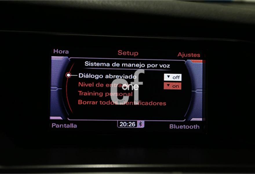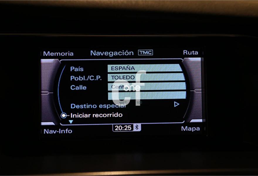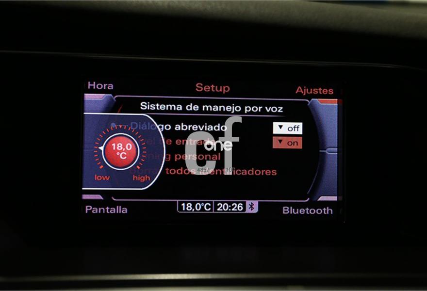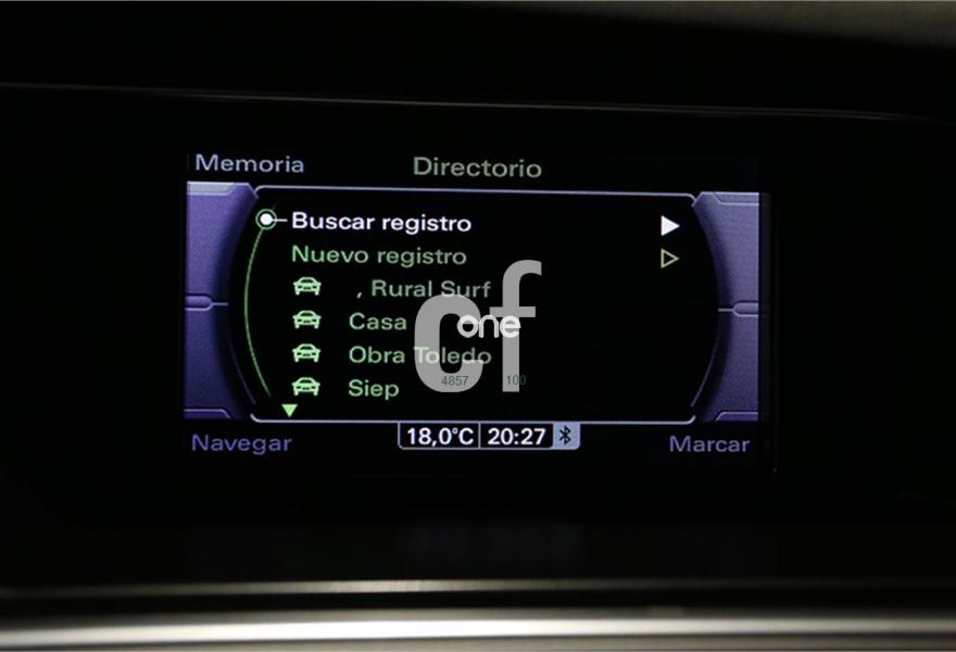 Faros de Xenon con óptica Led, Sensores traseros de aparcamiento, Llantas aleación 5 radios 225/50/17", Pantalla a color con Navegador GPS a color e info Tráfico, Control de velocidad crucero, Sistema Start-Stop, Climatizador, Audi Multimedia con doble SD, Volante multifunción en cuero, Bluetooth integrado, Ordenador de abordo, Control por voz, Sensor de luz, Reposabrazos central delantero y trasero, Freno de mano eléctrico, Radio CD-DVD MP3, Retrovisores Eléctricos,