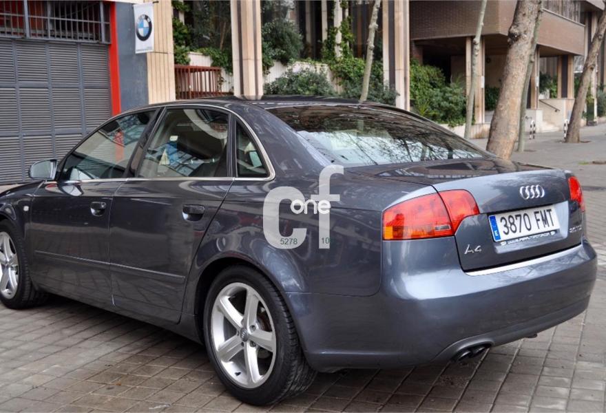 AUDI A4, Diesel, año 2007, 157000 kilómetros, color Gris / Plata (GRIS PLOMO METALIZADO) , precio 8900€. Asiento acompañante regulable en altura,Asientos delanteros deportivos,Cuero Valcona con logo S line,Cuero Valcona Negro (asientos deportivos,Paquete deportivo S line,Saco portaesquís,Equipo de sonido BOSE,Radio Symphony,Espejos retrov. exteriores calefactables,Paquete deportivo S line plus,Volante multif. multitronic/tiptronic,Llantas aleación 8Jx18 5 brazos,Suspensión deportiva S line,ISOFIX y desactivador airbag pasajero. Audi A4 2.0 TDI S-Line, Nacional, único dueño, impecable.