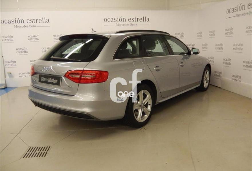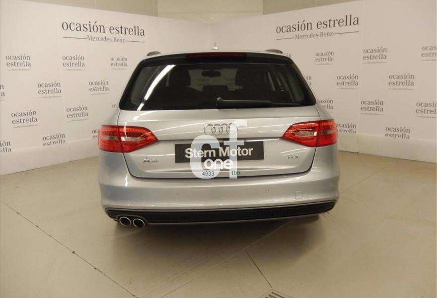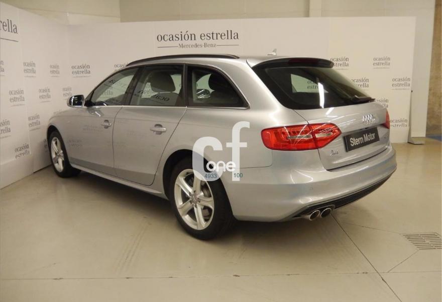 AUDI A4, Diesel, año 2014, 50500 kilómetros, color Gris / Plata metalizado, precio 23100€. Parking control plus con cámara trasera,Barras laterales negras en el techo,Llantas de aleación 7,5Jx17 diseño 5 brazos con neumáticos 225/50 R 17,Paquete exterior S line,Plata Hielo (metalizado),Control automático de velocidad (Tempomat),Cuero Milano Negro - Asientos Confort,Espejos retrovisores exteriores plegables eléctricamente,Faros de xenón plus con luz de marcha diurna con técnica LED,Lavafaros,Sensor de luz y lluvia,MMI navegación,Audi music interface. Vehículo completamente equipado, en perfecto estado y revisado por nuestro concesionario MERCEDES-BENZ.