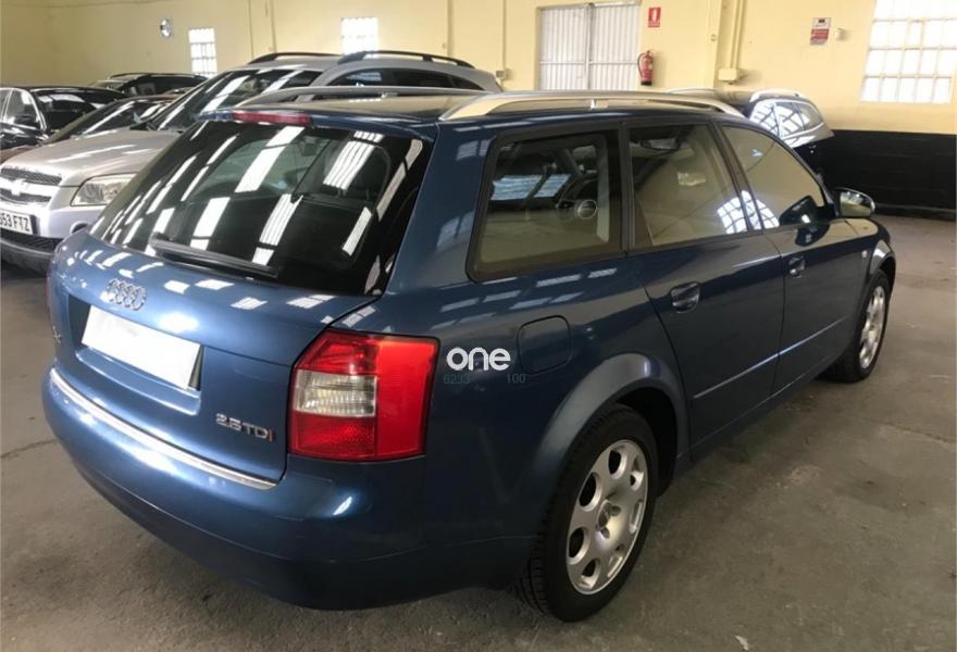 AUDI A4, Diesel, año 2002, 279000 kilómetros, color Azul metalizado, precio 4950€. A4 2.5 TDI 163CV CAMBIO 6 VELOCIDADES AUTOMATICO Y SECUENCIAS Y SPORT ... DISTRIBUCION COMPLETA Y REVISIÓN RECIÉN HECHA .... Elevalunas eléctricos,cierre centralizado,climatizador bizona,asientos deportivos con calefacción,volante de piel multifuncional,control de velocidad,reposa brazos central,llantas de aluminio .... MUY CUIDADO MEJOR VER Y PROBAR ....RECOGEMOS SU VEHICULO .... DISPONEMOS DE 90 COCHES EN STOCK :