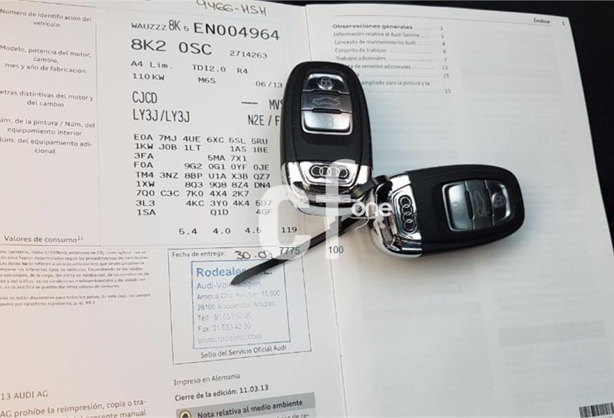 AUDI A4, Diesel, año 2013, 183000 kilómetros, color Rojo , precio 16499€. Autos Extremacar sl ofrece este vehiculo en perfectas condiciones, con kilometros certificados con libro de revisiones con todas ellas selladas selladas en concesionario Audi, con doce meses de garantia total, Esta en perfecto estado, tiene todos los extras, climatizado bizona, ordenador a bordo, control de velocidad, sensor de lluvia, sensor de luces, llantas de aleación, lunas tintadas, navegador, etc, kilometros certificados. Se aceptan toda prueba mecánica tanto en concesionario oficial como en taller de confianza..