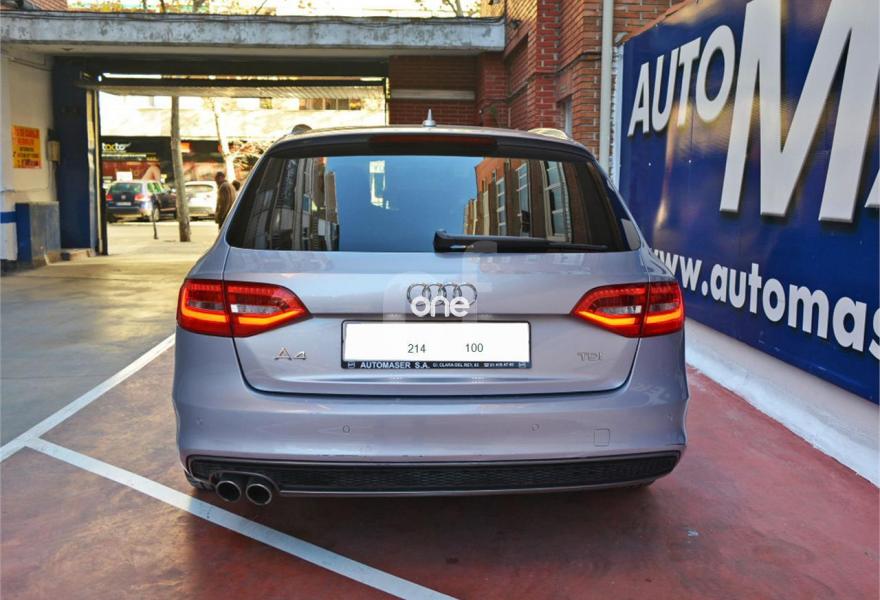 AUDI A4, Diesel, año 2014, 135000 kilómetros, color Gris / Plata metalizado, precio 19000€. Asientos delanteros deportivos,Audi music interface,MMI navegación,Control automático de velocidad (Tempomat),Lavafaros,Sensor de luz y lluvia,Techo corredizo eléctrico de cristal,Llantas de aleación 8Jx17 diseño 10 radios Estrella con neumáticos 245/45 R 17,Pintura metalizada,Asistente de luz de carretera "smart beam",Llantas de aleación 7,5Jx17 diseño 20 radios Dynamik con neumáticos 225/50 R 17. Vehiculo nacional. Todas las revisiones pasadas en AUDI.