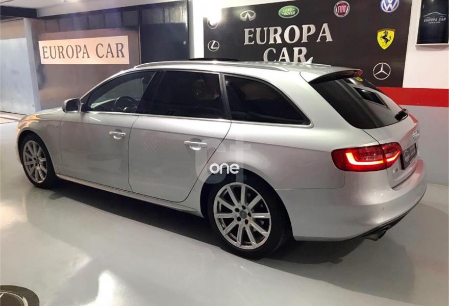 AUDI A4, Diesel, año 2013, 157624 kilómetros, color Gris / Plata metalizado, precio 22500€. Asientos delanteros deportivos S,Asientos delanteros y traseros calefactables,Inserciones interiores en lacado brillante negro,Paquete deportivo S line,Revestimiento interior del techo en negro,Tapicería S line en tela Sprint/cuero,Audi music interface,Instalación básica manos libres (Bluetooth) para teléfono móvil,Teléfono Audi Bluetooth GSM con auricular inalámbrico y apoyabrazos central delantero,Aro del volante en cuero Audi exclusive,Faros de xenón plus con luz de marcha diurna con técnica LED,Instalación manos libres (Bluetooth) para teléfono móvil,Instalación manos libres (Bluetooth) para teléfono móvil y apoyabrazos central delantero,Lavafaros,Parasoles extensibles/desplazables,Sensor de luz y lluvia,Techo panorámico de cristal,Tela Sprint/Cuero Negro (costuras en negro),Volante deportivo de tres radios multifuncional,Gris Dakota (metalizado),Paquete exterior S line,Parking control plus,Audi hold assist,Asientos delanteros con regulación lumbar eléctrica,Asientos delanteros calefactables,MMI navegación plus,Control automático de velocidad (Tempomat),Cortinilla enrollable manual en ventanillas de las puertas traseras,Espejo retrovisor interior antideslumbrante automático con sensor de luz y lluvia,Espejos retrovisores exteriores antideslumbrantes automáticos y plegables eléctricamente,Llantas de aleación 8Jx18 diseño 10 radios Dynamik con neumáticos 245/40 R 18,Suspensión deportiva S line,Airbags laterales traseros,Parking control trasero. AUDI A4 AVANT 3.0 TDI 204 cv Multitronic S-Line Plus Int/Ext.