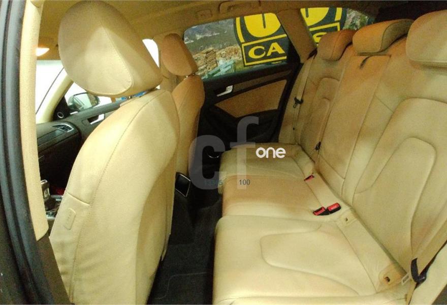 AUDI A4, Diesel, año 2013, 112970 kilómetros, color Beige metalizado, precio 15800€. Alfombrillas en color Audi exclusive,Asientos delanteros calefactables,Asientos delanteros con regulación lumbar eléctrica,Inserciones interiores en aluminio mate cepillado,Moqueta del piso en color Audi exclusive,Pomo palanca de cambio manual en aluminio,Tapicería en cuero Milano,Equipo de sonido Bang & Olufsen,Instalación manos libres (Bluetooth) para teléfono móvil,MMI navegación,Cuero Milano Beige Cardomomo - Asientos Confort,Espejos retrovisores exteriores calefactables,Espejos retrovisores exteriores plegables eléctricamente,Sensor de luz y lluvia,Set de fijación para el maletero,Sistema de alarma antirrobo,Barras laterales en el techo pulidas,Cristales tintados oscuros,Fijación para tres asientos infantiles ISOFIX y desactivador airbag del acompañante,Parking control plus. Vehículo procedente de concesión AUDI con todos los mantenimientos en la casa. El precio es final, con transferencia, garantía e IVA incluido. Posibilidad de financiación.