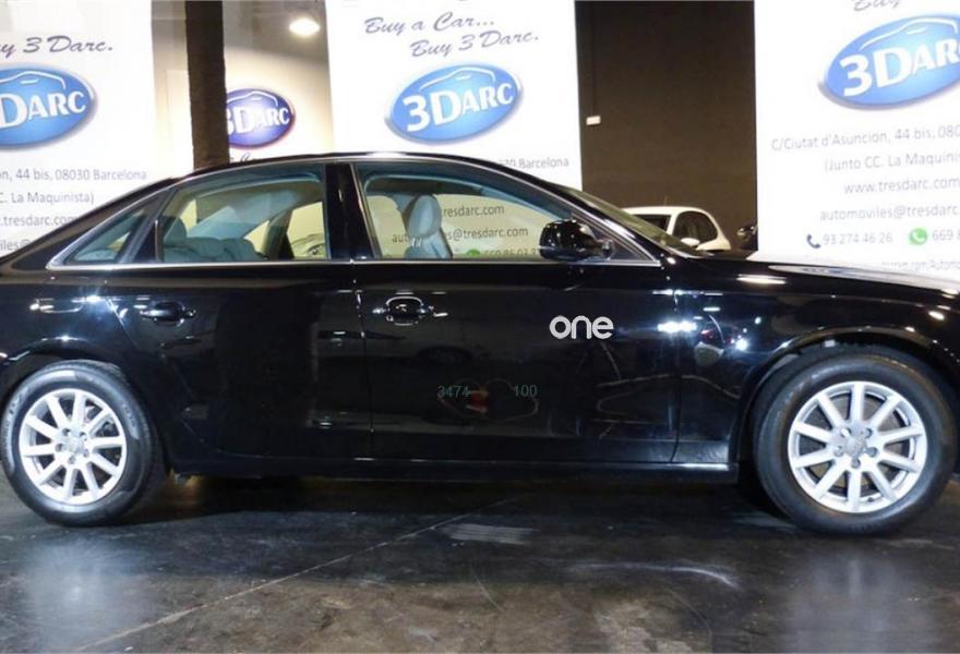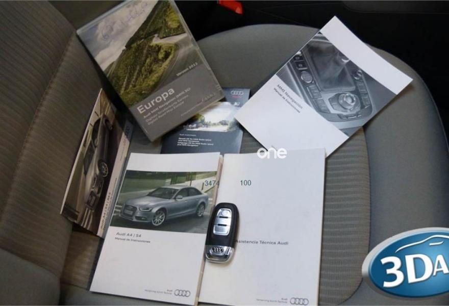 AUDI A4, Diesel, año 2012, 105000 kilómetros, color Negro metalizado, precio 15900€. Audi exclusive edition,Receptor de TV analógico y digital y radio digital (DAB),Paquete portaobjetos,Tapicería en tela Atrium,Equipo de sonido Audi,Instalación básica manos libres (Bluetooth) para teléfono móvil,MMI navegación plus,Audi exclusive line,Control automático de velocidad (Tempomat),Espejo retrovisor interior antideslumbrante automático con sensor de luz y lluvia,Espejos retrovisores exteriores calefactables,Espejos retrovisores exteriores plegables eléctricamente,Faros de xenón plus con luz de marcha diurna con técnica LED,Lavafaros,Techo corredizo eléctrico de cristal,Volante deportivo tres radios,Volante deportivo de tres radios multifuncional,Llantas de aleación 7,5Jx16 diseño 5 brazos con neumáticos 225/55 R 16,Negro Phantom (efecto perla),Pintura metalizada,Sin inscripción trasera de tecnología,Sin inscripción trasera de modelo y tecnología,Suspensión deportiva,Airbags laterales traseros,Audi hold assist,Control de crucero adaptativo,Fijación para tres asientos infantiles ISOFIX y desactivador airbag del acompañante.
