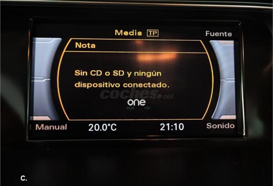 TAPICERÍA DE CUERO BEIGE, SENSORES DE APARCAMIENTO DELANTEROS Y TRASEROS, ASIENTOS CALEFACTABLES, RADIO CD, SISTEMA DE START-STOP, CONTROL DE VELOCIDAD, VOLANTE MULTIFUNCIÓN, RADIO CD, CLIMATIZADOR AUTOMÁTICO, CONTROL DE VELOCIDAD DE CRUCERO, BLUETOOTH, SENSOR DE LUCES, ENTRADA SD+AUX, MMI AUDI AUDIO, FRENO DE MANO ELECTRÓNICO, LLANTAS DE ALEACIÓN ETC. MODELO DEL 2013 FABRICADO EN 2012. INFORME PERICIAL EXTERNO DE KMS Y ESTADO, SE ENTREGARÁ CON LA ÚLTIMA MATRICULA EXPEDIDA POR LA DGT..