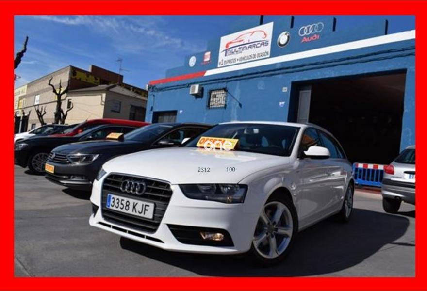 AUDI A4, Diesel, año 2014, 129000 kilómetros, color Blanco metalizado, precio 12400€. ATENCION hay que sumarle el iva mas el impuesto de matriculacion a particular hay que sumarle garantia 1 año , trasferencia, y revision , total 15.900€ financiado vehiculo sujeto a oferta de financiacion si financiar 17.900€ en calle,somos antigua concesion de seat , con talleres propios,acabado en madera y algo de s.line,llantas de aluminio,climatizador ,asientos de cuero ,chasis de aluminio,ordenador de abordo,velocidad de crucero,abs,esp,isofix,star stock ,gps navegacion de regalo, direccion asistida, elevalunas electricos,volante multifuncion de cuero deportivo de 3 palos,sensores de aparcamiento,2.0tdi 120cv 6 velocidades minimo consumo,y muchos extras mas,,fecha exacta 13-09-2013
