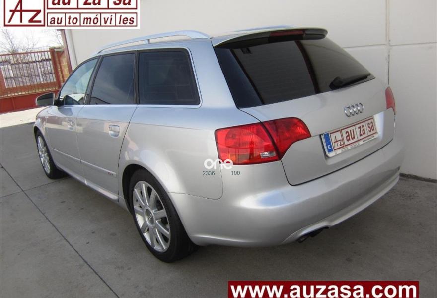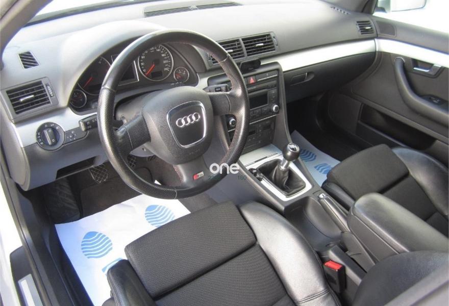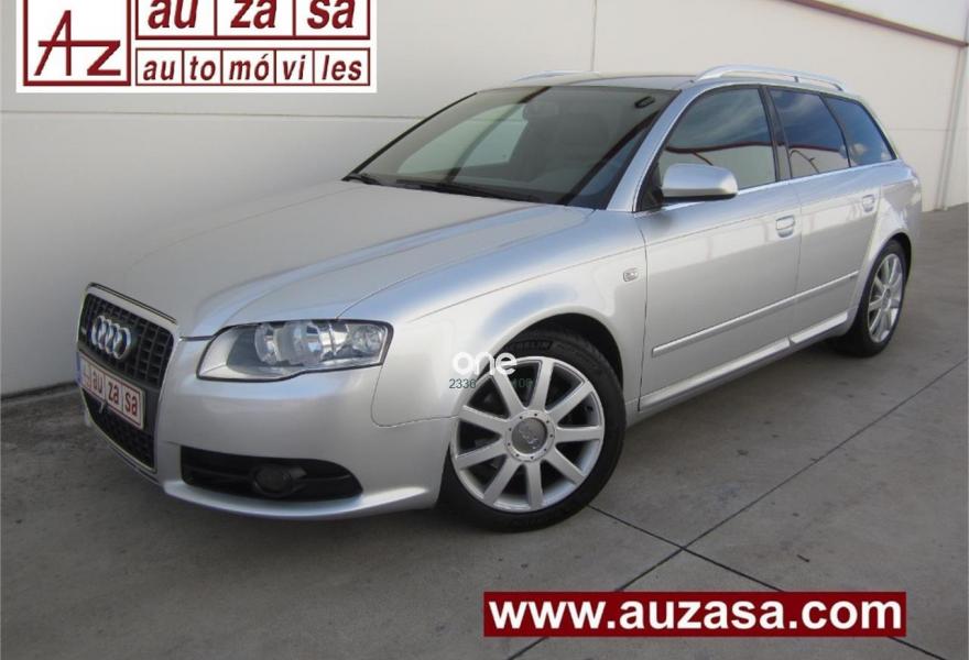 AUDI A4, Diesel, año 2008, 210000 kilómetros, color Gris / Plata (S-LINE) metalizado, precio 8500€. Asientos delanteros deportivos,Cuero Valcona Negro (asientos deportivos),Inserciones en aluminio plata Facette,Paquete deportivo S line,Reposabrazos delantero,Tapicería en cuero Valcona,Preinstalación de teléfono móvil con kit manos libres (Bluetooth),Radio Symphony,Paquete deportivo S line plus,Volante deportivo tres radios,Barras laterales en el techo pulidas,Cristales tintados oscuros,Llantas de aleación 7,5Jx17 diseño 9 radios con neumáticos 235/45 R 17,Paquete exterior S line,Pintura metalizada. MUY BUEN ESTADO.
