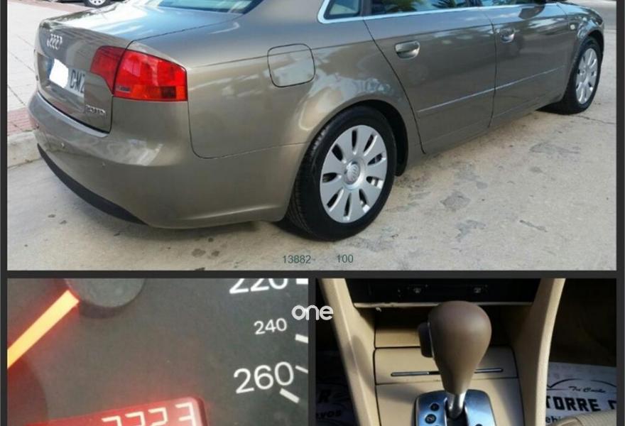 AUDI A4, Diesel, año 2006, 140000 kilómetros, color Marrón metalizado, precio 7990€. 12 MESES DE GARANTÍA EN TODA ESPAÑA. CAJA DE CAMBIO AUTOMÁTICA 7 VELOCIDADES. CLIMATIZADO BIZONA+RADIO CD CON MANDOS AL VOLANTE+ ORDENADOR DE ABORDO+ ESPEJOS ELÉCTRICOS+ CIERRE CENTRALIZADO + 4 ELEVALUNAS ELÉCTRICOS + APOYA BRAZOS DELANTEROS+ APOYA BRAZOS TRASEROS+ POSA VASOS+ ISOFIX+DIRECCIÓN ASISTIDA+ ABS,ESP+ FAROS ANTINIEBLA+ MOLDURAS EXTERIORES CROMADAS+ AYUDA EN EL APARCAMIENTO. VEHÍCULO REVISADO Y GARANTIZADO EN NUESTRAS INSTALACIONES. SE ACEPTA VEHÍCULO COMO PARTE DE PAGO PREVIA TASACIÓN. VISÍTENOS EN EL PASEO MARÍTIMO DE LEVANTE FRENTE EL CLUB NÁUTICO, TORRE DEL MAR (MÁLAGA) .