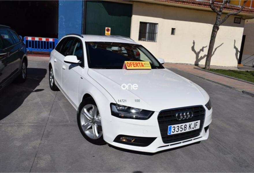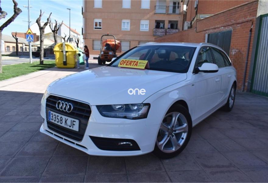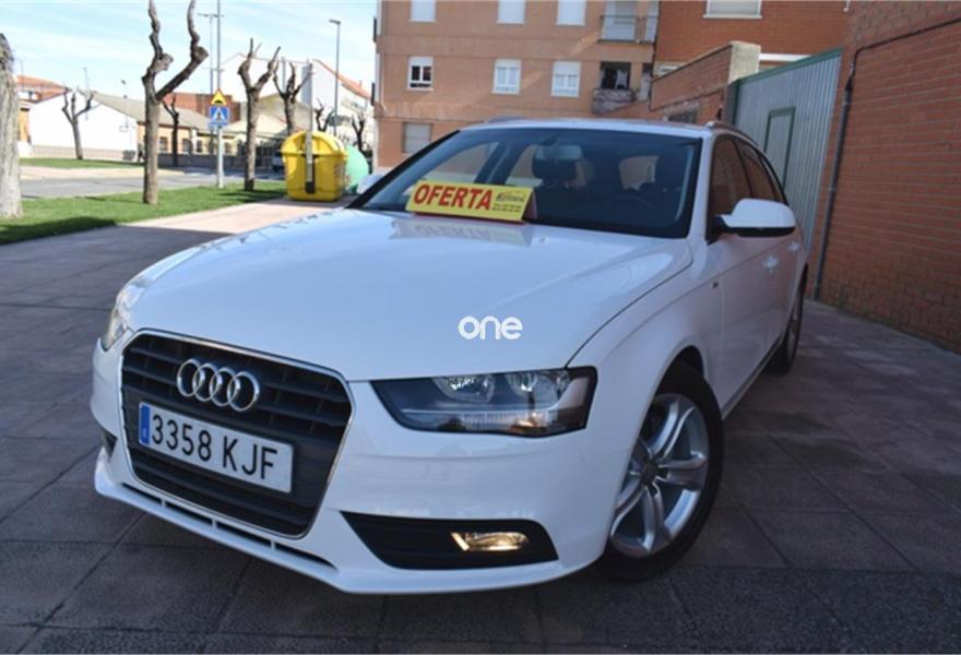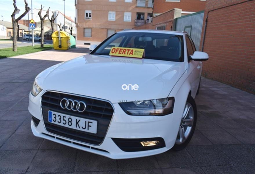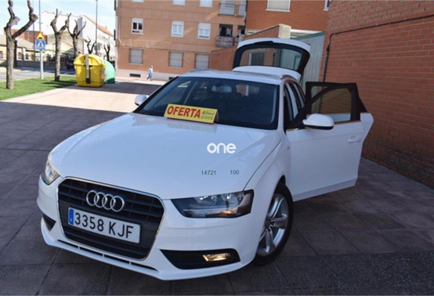 AUDI A4, Diesel, año 2014, 129000 kilómetros, color Blanco metalizado, precio 12400€. ATENCION hay que sumarle el iva mas el impuesto de matriculacion a particular hay que sumarle garantia 1 año , trasferencia, y revision , total 15.900€ financiado vehiculo sujeto a oferta de financiacion si financiar 17.900€ en calle,somos antigua concesion de seat , con talleres propios,acabado en madera y algo de s.line,llantas de aluminio,climatizador ,asientos de cuero ,chasis de aluminio,ordenador de abordo,velocidad de crucero,abs,esp,isofix,star stock ,gps navegacion de regalo, direccion asistida, elevalunas electricos,volante multifuncion de cuero deportivo de 3 palos,sensores de aparcamiento,2.0tdi 120cv 6 velocidades minimo consumo,y muchos extras mas,,fecha exacta 13-09-2013