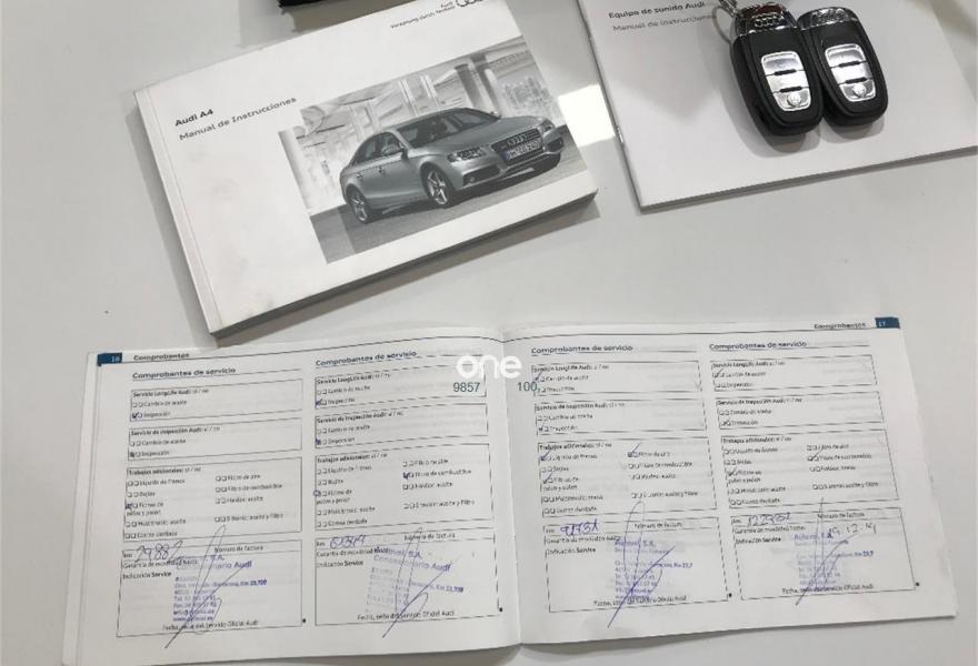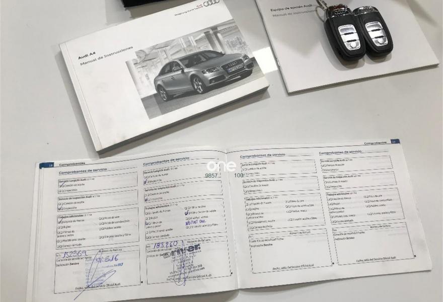 AUDI A4, Diesel, año 2010, 199000 kilómetros, color Blanco metalizado, precio 11599€. Perfecto estado general, nacional, único propietario, correa de distribución recién cambiada, motor diesel 2.0 tdi con 143 caballos y 6 marchas, manual, libro de revisiones en la casa oficial, faros xenon y Leds, sensores de luz lluvia y aparcamiento, ruedas Pirelli nuevas, climatizador bi-zona, bluetooth integrado, 2 llaves, ajuste lumbar, etc.......………..Cogemos su coche como forma de pago, se acepta prueba mecánica y se entrega con el cambio de nombre incluido y un año de garantía, entregamos coches en toda España.