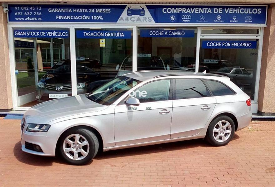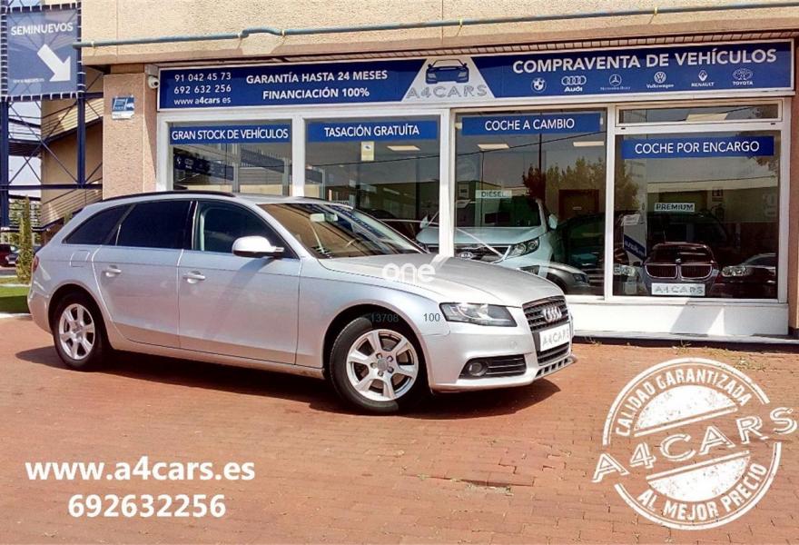 AUDI A4, Diesel, año 2010, 149977 kilómetros, color Gris / Plata metalizado, precio 11990€. A4CARS.ES/(REPORTAJE COMPLETO EN A4CARS.ES) *COMPRAMOS SU COCHE* P.V.P Garantía comercial de hasta 24 meses a consultar.Kms certificados.Precio no sujeto a financiación***FINANCIACIÓN 100% DESDE 263€/MES***Correa sustituida a los 109000km con factura.Revisiones al día y selladas.Vehículo nacional.Equipado con: elevalunas eléctricos, retrovisores eléctricos, ordenador de abordo,volante multifunción, control/limitador de velocidad,preinstalación manos libres,start/stop, radioCDmp3/aux,climatizador,Isofix,apoyabrazos trasero,luces antiniebla,lunas tintadas,cortinilla trasera y llantas de 16 pulgadas. Precio reflejado es un precio base con impuestos incluidos , consultar con su comercial precios de servicios añadidos. Este anuncio no es vinculante, se muestra a nivel informativo y no contractual. A4Cars.