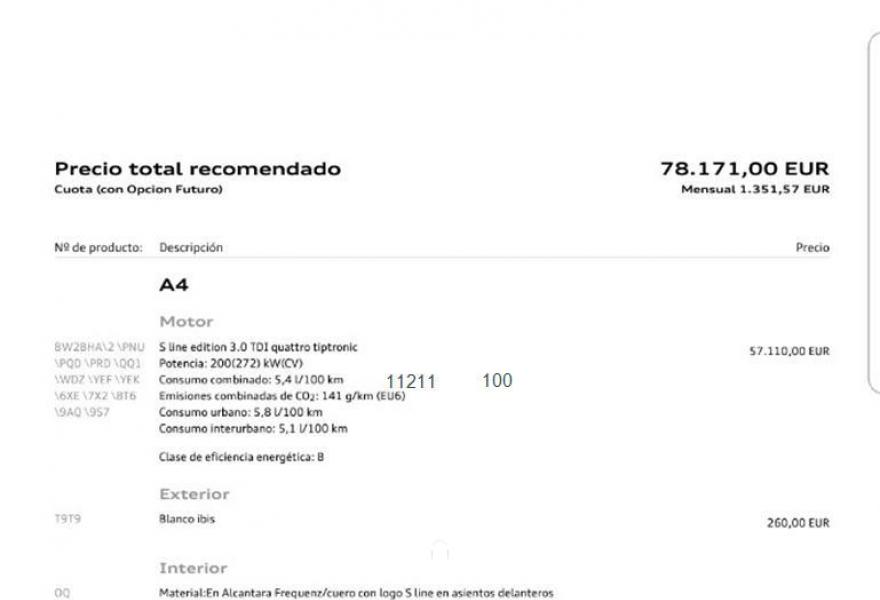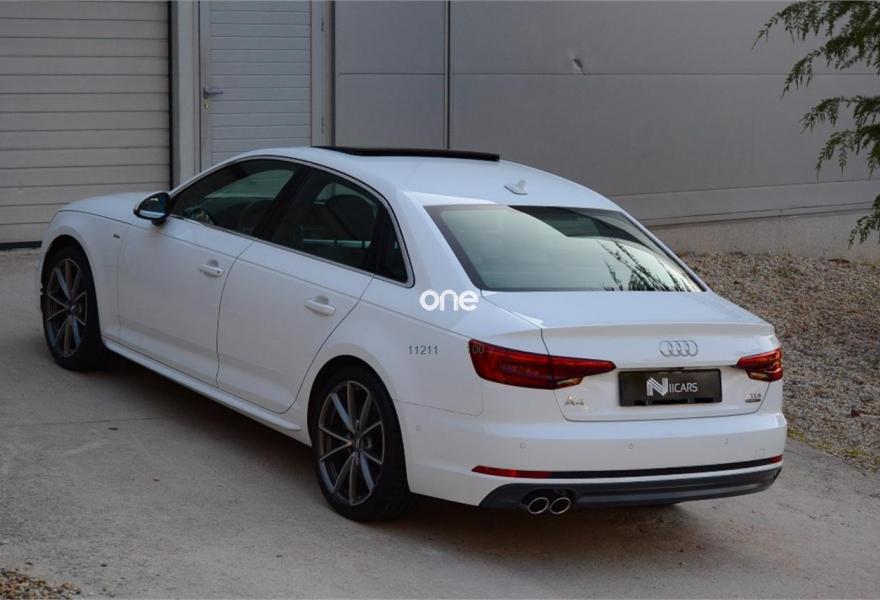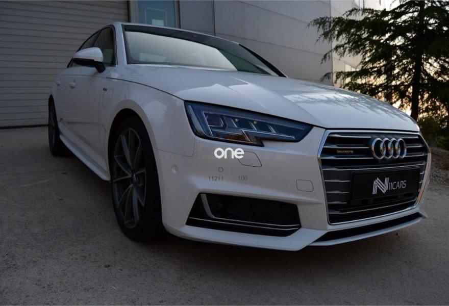 AUDI A4, Diesel, año 2015, 6135 kilómetros, color Blanco , precio 47900€. Sistema de aviso de límite de velocidad por reconocimiento de señales,Inserciones en aluminio mate cepillado,Asientos delanteros calefactables,Asientos delanteros con regulación eléctrica y asiento del conductor con memoria,Tapicería en Alcantara Frequenz/cuero con logo S line en asientos delanteros,Audi connect,Equipo de sonido Bang&Olufsen 3D,MMI navegación plus,Alcantara Frequenz/Cuero Gris Rotor (S line),Asistente de luz de carretera "smart beam",Dirección dinámica "dynamic steering",Faros Matrix LED,Climatizador de confort de tres zonas,Paquete de iluminación plus (Ambiente),Paquete deportivo S line,Paquete exterior S line,Preinstalación de gancho de remolque,Revestimiento interior del techo en negro,Techo corredizo eléctrico de cristal,Volante de tres radios multifuncional plus achatado en parte inferior (incluye levas de cambio en automáticos),Blanco Ibis,Llantas de aleación 8,5 J x 19 Audi Sport diseño de 5 radios en V con logo RS con neumáticos 245 / 35 R 19,Pintura Blanco Ibis,Amortiguación regulable deportiva "damper control" sport,Audi virtual cockpit,Head-up Display,Suspensión deportiva,Audi active lane assist,Audi park assist,Audi hold assist,Cámara de visión trasera,Paquete de asistentes City con paquete de asistentes de aparcamiento,Llave de confort con apertura por control gestual,Tyre Mobility System,Calefacción estacionaria progamable con mando a distancia. Impecable, unidad exclusiva, "Solo 6135 km", proced. conc. oficial audi, 3.0 v6 tdi 272cv, tiptronic, tracción quattro, historial de mantenimiento, libro, nuevo supera los 78000€, super equipado, IVA DEDUCIBLE.