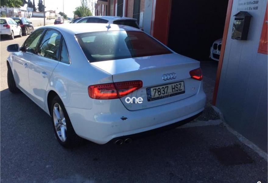 AUDI A4, Diesel, año 2013, 103400 kilómetros, color Blanco , precio 17990€. Paquete business,Asistente de luz de carretera "smart beam",Espejo retrovisor interior antideslumbrante automático con sensor de luz y lluvia,Espejos retrovisores exteriores calefactables,Faros de xenón plus con luz de marcha diurna con técnica LED,Lavafaros,Sensor de luz y lluvia,Sistema de alarma antirrobo,Sistema de control de presión de los neumáticos,Parking control trasero,Blanco Glaciar (metalizado),MMI navegación plus,Instalación manos libres (Bluetooth) para teléfono móvil,Equipo de sonido Audi. PRECIO FINAL CON IVA INCLUIDO (IVA deducible). VEHÍCULO NACIONAL. FINANCIACION A MEDIDA hasta del 100% del precio. Kilómetros CERTIFICADOS. Admitimos tu coche, como forma de pago, sin importar su antiguedad. Revisiones en servicio oficial con HISTÓRICO DE MANTENIMIENTO. GASTOS DE TRAMITACION:150€ (No incluidos en el precio). GARANTÍA AMPLIABLE. Transporte opcional a domicilio. Más de 100 vehículos en stock permanente. ABRIMOS LOS SÁBADOS. Más en WWW.AUTOSDANICAR.COM.