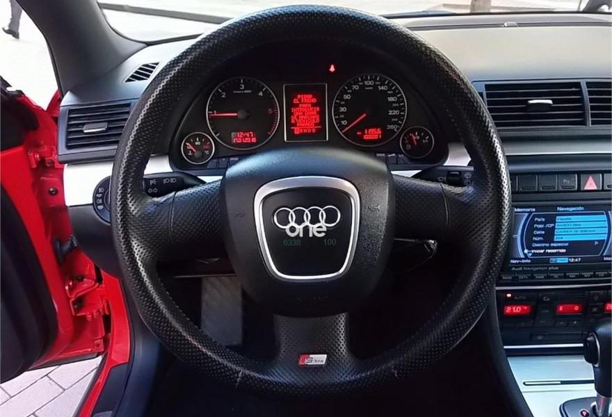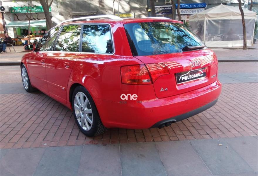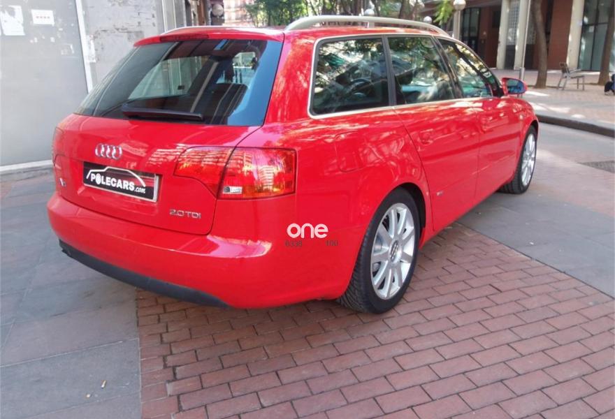 AUDI A4, Diesel, año 2005, 99000 kilómetros, color Rojo , precio 10500€. Asientos delanteros deportivos,Interior en aluminio plata Facette,Reposbrazos central del compartimiento,Preinstalación teléfono (Bluetooth),Sistema de navegación,Cortinilla enroll manual lunas prts tras,Vol deportivo cuero perforado (Sline),Volant deport tres radios multifunción,Volante deport de tres radios,Barras del techo pulidas,Llantas 7,5x17 9 radios 235/45,Paquete deportivo S line,Paquete exterior S line,Sistema aparcamiento acustico del/traser,Sistema aparcamiento acustico trasero,ISOFIX y desactivador airbag pasaj. Impecable estado!!!!!!! Como nuevo!!!!!! Espectacular!!!!!!! Único!!!!!!Audi A-4 Avant 2.0 TDI 140CV S-LINE Multitronic. Vehículo nacional en inmejorable estado con la correa de distribución recién cambiada. Sólo 99000 kms!!!! 12 meses de garantía. Equipado con climatizador aut./cambio automático secuencial/paquete deportivo S-LINE interior y exterior/parktronic delantero y trasero/navegador GPS/bluetooth/entrada USB/asientos mixtos de cuero deportivos..........Mejor verlo!!!!!!! Aceptamos vehículos como parte de pago. Hacemos entregas en toda la península. Para más información llamar por teléfono..