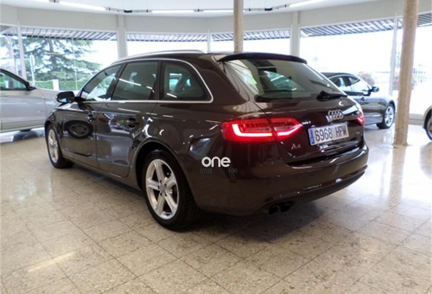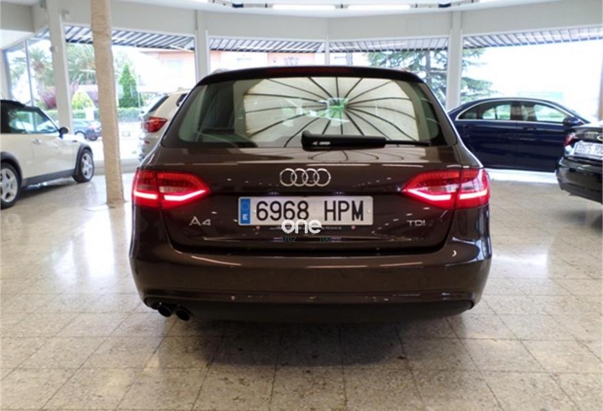 AUDI A4, Diesel, año 2013, 84000 kilómetros, color Marrón (Teca) metalizado, precio 19900€. Tapicería en cuero Milano,Instalación básica manos libres (Bluetooth) para teléfono móvil,Reposabrazos central delantero,Control automático de velocidad (Tempomat),Cortinilla enrollable manual en ventanillas de las puertas traseras,Cuero Milano Gris Luz - Asientos Confort,Espejo retrovisor interior antideslumbrante automático con sensor de luz y lluvia,Espejos retrovisores exteriores antideslumbrantes automáticos y plegables eléctricamente,Faros de xenón plus con luz de marcha diurna con técnica LED,Instalación manos libres (Bluetooth) para teléfono móvil,Lavafaros,Paquete cuero,Sensor de luz y lluvia,Techo panorámico de cristal,Barras laterales en el techo pulidas,Llantas de aleación 7,5Jx17 diseño 5 brazos con neumáticos 225/50 R 17,Marrón Teca (metalizado),Pintura metalizada,Fijación para tres asientos infantiles ISOFIX y desactivador airbag del acompañante,Parking control trasero. - Faros de Bi-xenón