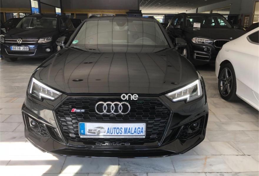 AUDI A4, Gasolina, año 2018, 7000 kilómetros, color Negro metalizado, precio 94990€. Audi park assist,Paquete dinámico RS,Sistema de aviso de límite de velocidad por reconocimiento de señales,Sistema de escape deportivo RS,Asientos delanteros deportivos S,Asientos delanteros y traseros calefactables,Cenicero y mechero,Asientos delanteros calefactables,Paquete diseño RS,Tapicería en cuero Milano,Equipo de sonido Bang&Olufsen 3D,Cristales traseros oscurecidos, incluye cristales de puertas delanteras insonorizantes,Espejos retrovisores exteriores calefactables plegables eléctricamente, con antideslumbramiento automático,Negro Brillante,Asistente de luz de carretera "smart beam",Faros Matrix LED,Llave de confort con apertura por control gestual del portón eléctrico,Llave de confort con apertura por control gestual del portón eléctrico y alarma antirrobo,Parabrisas delantero calefactable,Pinzas de freno en color rojo,Set de fijación para el maletero,Volante de tres radios multifuncional plus achatado en parte inferior (incluye levas de cambio en automáticos),Head-up Display,Amortiguación regulable deportiva S "damper control",Incremento de la velocidad máxima a 280 km/h,Diferencial trasero deportivo,Cámara de visión trasera. We also speak englihs