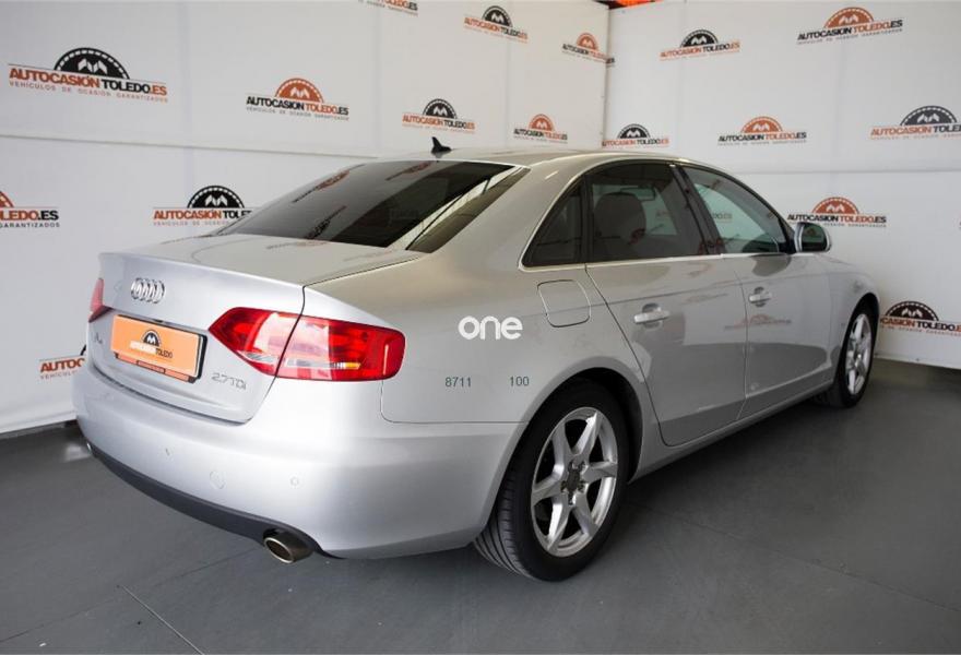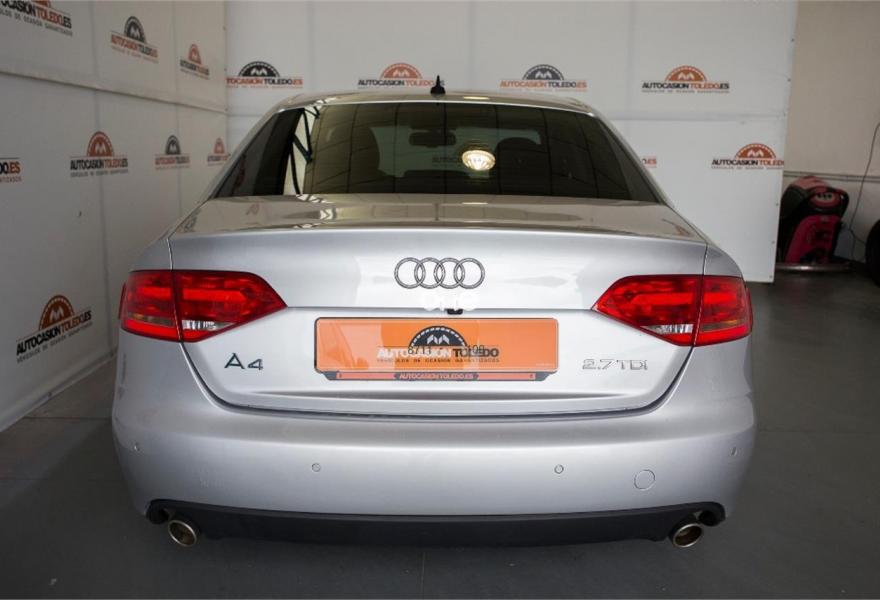 AUDI A4, Diesel, año 2008, 337000 kilómetros, color Gris / Plata , precio 9600€. PRECIO 9.600€ GASTOS DE TRANSFERENCIA Y UN AÑO DE GARANTÍA INCLUIDA EN EL PRECIO. AUDI A4 2.7 TDI 190cv MULTITRONIC DPF. DIESEL MATRICULACIÓN AGOSTO 2008, 337.000km EQUIPADO CON LLANTAS 17", SENSORES DE APARCAMIENTO Y CÁMARA DE MARCHA ATRÁS, FAROS DE XENON CON LUD LED DIURNA, ASIENTOS DELANTEROS ELÉCTRICOS Y CALEFACTADOS, TAPICERÍA MIXTA DE CUERO Y ALCÁNTARA, NAVEGADOR GPS A COLOR, FRENO DE MANO ELÉCTRICO, CLIMATIZADOR BIZONA, RETROVISORES ELÉCTRICOS Y TÉRMICOS, SENSOR DE LUZ, CONTROL DE VELOCIDAD, ESP, CARGADOR DE CD. PUEDE VERLO Y PROBARLO EN NUESTRO CONCESIONARIO AUTOCASION TOLEDO, CALLE RÍO JARAMA 99, SANTA MARÍA DE BENQUERENCIA (POLÍGONO INDUSTRIAL) TOLEDO..