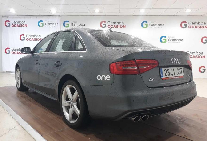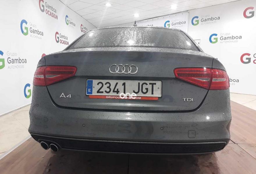 AUDI A4, Diesel, año 2015, 73030 kilómetros, color Gris / Plata , precio 19990€. “Todos nuestros vehículos se entregan revisados y garantizados. En el precio indicado se incluyen todos los gastos, tanto impuestos como transferencia a su nombre. Este vehículo tiene IVA deducible (si procede). Admitimos su coche como parte de pago y nuestros asesores de servicio le indicarán las mejores opciones en el caso que decida financiar (Financiamos hasta el 100%). La garantía de Gamboa Ocasión es GARANTIA de CALIDAD, nos avalan la representación de las marcas, Toyota (Supra gamboa), Hyundai (Motor Gamboa), Nissan (Gamboa Automoción), Infiniti (El Plantío), Subaru y Ssangyong (Trade Gamboa). - Más de 400 vehículos en Stock seleccionados cuidadosamente para nuestros clientes. - Más de 35 exposiciones y talleres en la comunidad de Madrid. - Más de 500 trabajadores, que desde el GRUPO GAMBOA, velan por la satisfacción de todos sus clientes. Visítenos en la web de nuestro grupo:.grupogamboa o en gamboaocasion”