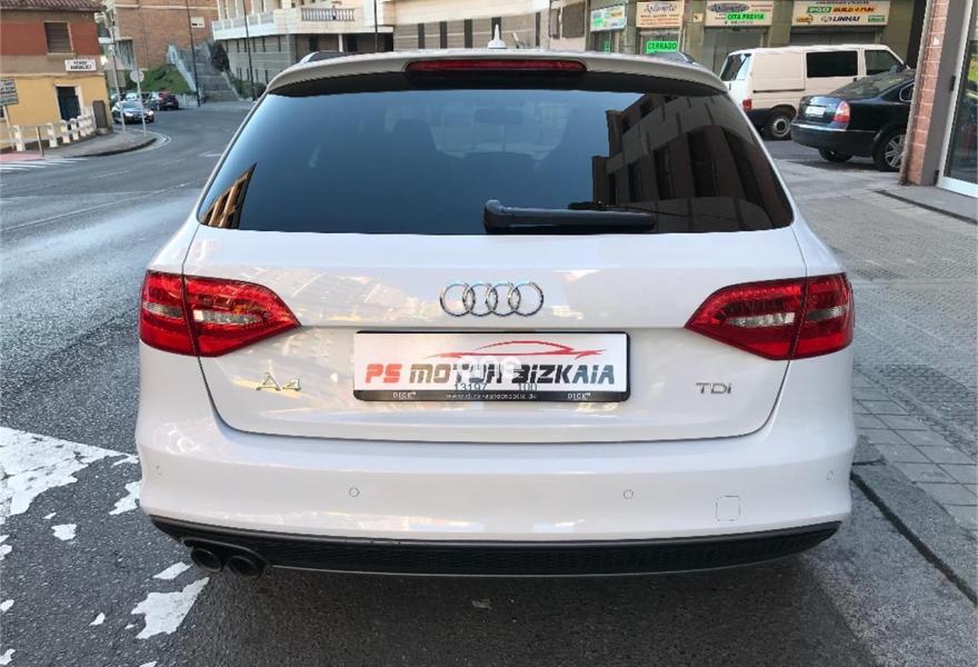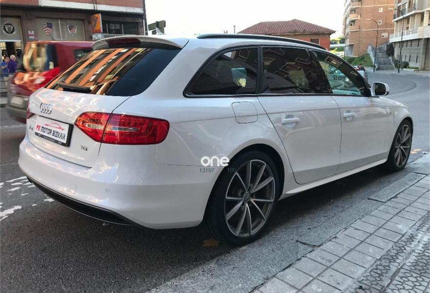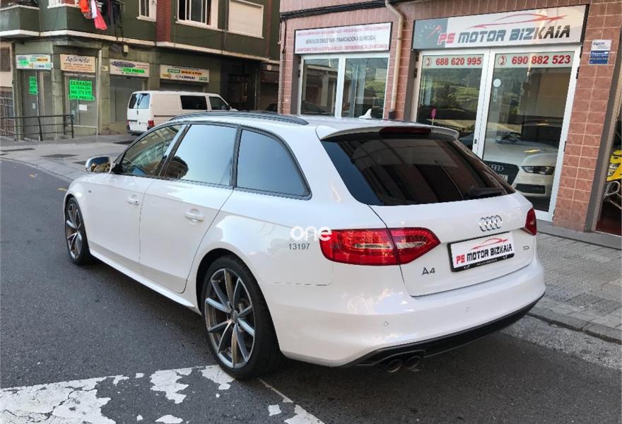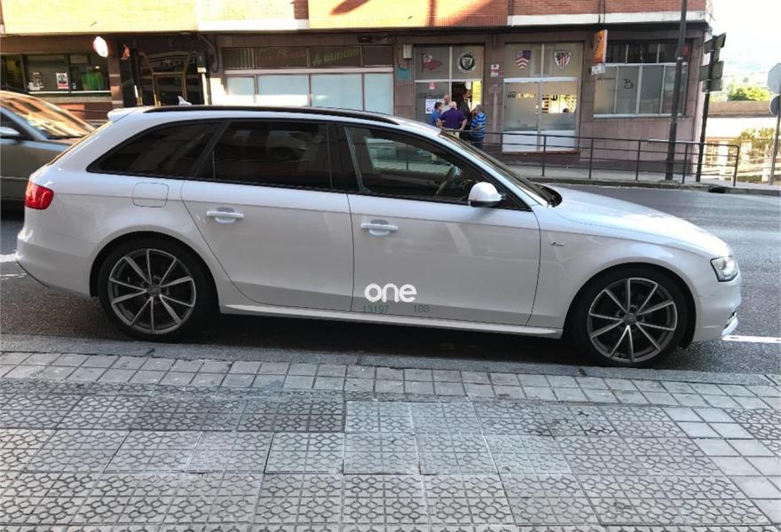 AUDI A4, Diesel, año 2015, 120000 kilómetros, color Blanco , precio 22990€. Audi drive select,Asientos delanteros con regulación eléctrica,Asientos delanteros con regulación lumbar eléctrica,Asientos delanteros deportivos S,Alfombrillas en color Audi exclusive,Paquete deportivo S line,Tapicería S line en cuero Napa fina,Equipo de sonido Audi,Instalación manos libres (Bluetooth) para teléfono móvil y apoyabrazos central delantero,Intercambiador de CD para MMI navegación plus,MMI navegación plus,Volante deportivo de tres radios multifuncional achatado en parte inferior,Asientos delanteros con regulación eléctrica y asiento del conductor con memoria,Audi side assist (asistente de cambio de carril),Control automático de velocidad (Tempomat),Climatizador de confort de tres zonas,Espejo retrovisor interior antideslumbrante automático con sensor de luz y lluvia,Lavafaros,Faros de xenón plus con luz de marcha diurna con técnica LED,Sistema de alarma antirrobo,Sensor de luz y lluvia,Toma de corriente de 230 Voltios,Suspensión deportiva S line,Audi active lane assist (asistente mantenimiento carril),Parking control plus,Fijación para tres asientos infantiles ISOFIX y desactivador airbag del acompañante,Control de crucero adaptativo,Airbags laterales traseros. En venta AUDI A4 AVANT 2.0 TDI 190 CV S LINE PLUS......