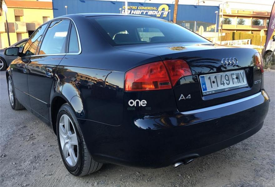 AUDI A4, Diesel, año 2007, 240000 kilómetros, color Azul (Azul/Oscuro) , precio 6900€. Vehículo procedente de particular en impresionante estado de conservación tanto interior como exterior, motor muy fiable y potente. Equipado con cambio automático, luces de xenón, navegación, control de velocidad, ordenador de abordo, volante multifunción, climatizador digital bi-zona, elevalunas eléctricos, cierre centralizado con mando y dobles llaves, retrovisores eléctricos, control de estabilidad, llantas, etc... mejor ver y probar sin compromiso, se acepta prueba mecánica de cualquier tipo en servicio oficial o donde se quiera. Posibilidad de transporte a cualquier punto de España (consultar), garantía mecánica de 1 año contratada con seguro privado desde 400€ (opcional por el cliente). FINANCIACIÓN A SU MEDIDA EN TODOS NUESTROS VEHÍCULOS PREVIO ESTUDIO. .