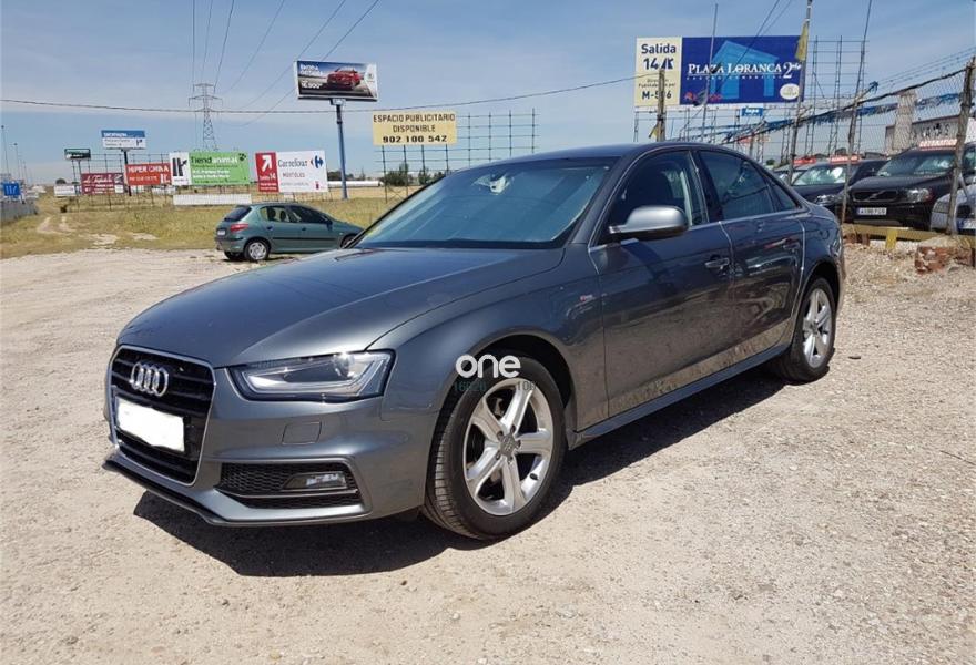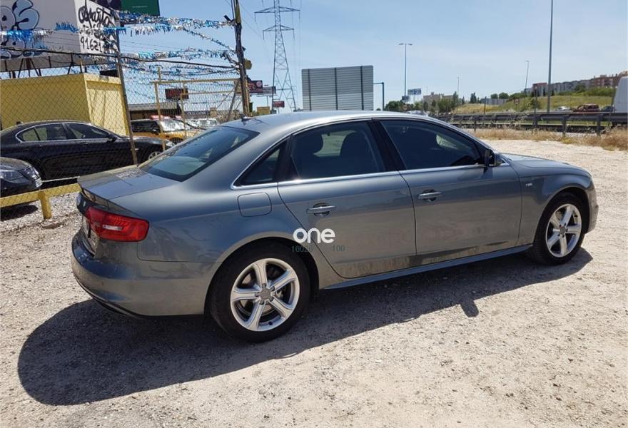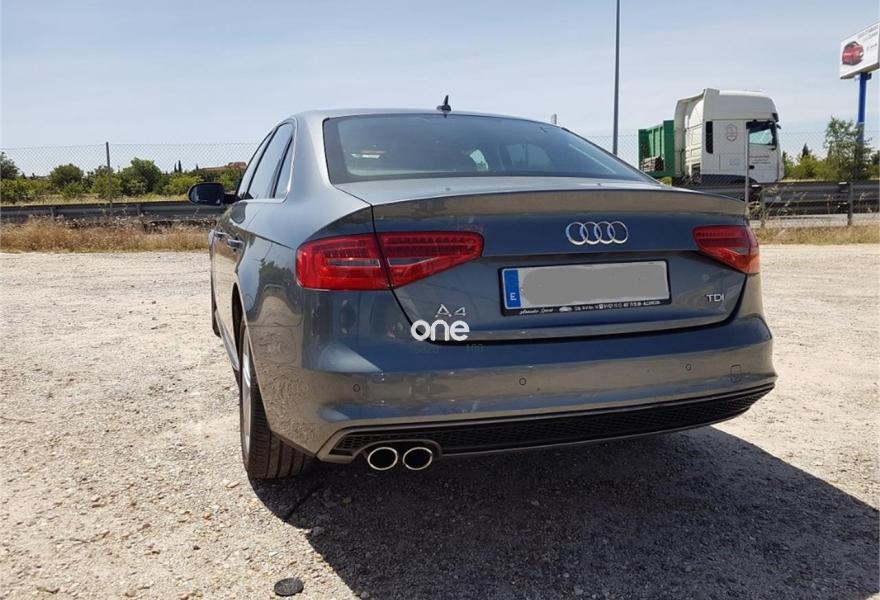 AUDI A4, Diesel, año 2014, 170000 kilómetros, color Gris / Plata (plomo) metalizado, precio 19800€. Alfombrillas en color Audi exclusive,Asientos delanteros deportivos,Paquete deportivo S line,Audi music interface,Equipo de sonido Audi,Instalación manos libres (Bluetooth) para teléfono móvil,Intercambiador de CD para MMI navegación,Intercambiador de CD para MMI navegación plus,Mando a distancia (HomeLink),MMI navegación,MMI navegación plus,Reposabrazos central delantero,Volante deportivo de tres radios multifuncional,Asiento trasero abatible asimétricamente,Asistente de luz de carretera "smart beam",Audi exclusive line,Control automático de velocidad (Tempomat),Cortinilla enrollable manual en ventanillas de las puertas traseras,Espejo retrovisor interior antideslumbrante automático con sensor de luz y lluvia,Llave de confort "advanced key",Luz adaptativa "dynamic adactative light",Lavafaros,Sensor de luz y lluvia,Sistema de alarma antirrobo,Gris Dakota (metalizado),Pintura metalizada,Pintura metalizada Audi exclusive gris Daytona,Airbags laterales traseros,Control de crucero adaptativo,Parking control plus,Parking control trasero. AUDI A4 TDI 177 CV S LINE MULTITRONIC 7 VELOCIDADES , automatico secuencial , todo el mantenimiento en audi , km hechos en carretera , muy equipado , navegacion , xenon , start stop , sensor luces y lluvia , volante cuero multifuncion , sensores de parcking , como nuevo , impecable estado . I.V.A. DEDUCIBLE ,garantia 12 meses opcional desde 300 euros , 150 euros gastos gestoria , financiacion a su medida , admito vehiculo como parte de pago ..