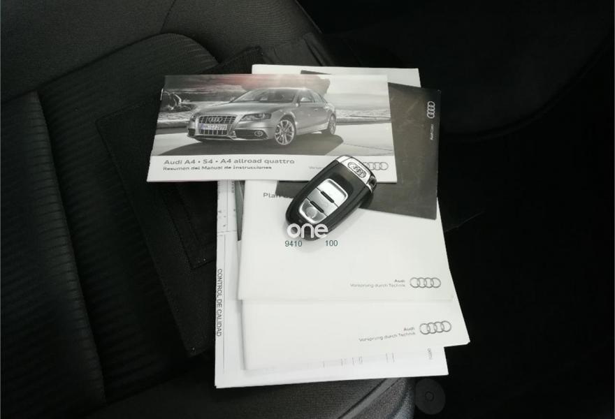 AUDI A4, Diesel, año 2011, 160800 kilómetros, color Gris / Plata (OSCURO) metalizado, precio 12900€. Tapicería en tela Atrium,Mando a distancia (HomeLink),Paquete maletero,Teléfono Audi Bluetooth GSM,Control automático de velocidad (Tempomat),Lavafaros,Faros de xenón Plus,Sensor de luces y lluvia,Gris Monzón (metalizado),Sistema de Aparcamiento Acústico APS trasero. Vehiculo nacional,kilometraje certificado,llantas,faros de bixenon,volante multifuncion,control de velocidad,sensor de alumbrado y lluvia,sistema start-stop,cambio manual de 6 vleocidades,sistema de navegacion,control por voz,radio cd,telefono,camara de marcha atras,sensor de aparcamiento trasero,climatizador automatico,aire acondicionado,luz diurna,retrovisores electricos,impecable estado.