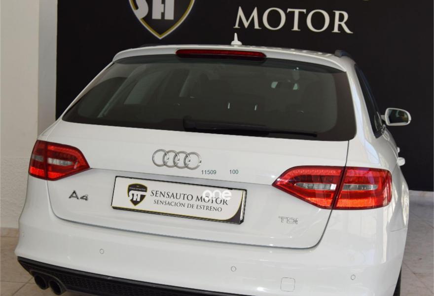 AUDI A4, Diesel, año 2015, 70000 kilómetros, color Blanco , precio 20800€. Paquete business,Asientos delanteros deportivos,Paquete portaobjetos,Paquete deportivo S line,Audi music interface,Instalación manos libres (Bluetooth) para teléfono móvil,Instalación manos libres (Bluetooth) para teléfono móvil y apoyabrazos central delantero,MMI navegación,Reposabrazos central delantero,Control automático de velocidad (Tempomat),Cortinilla enrollable manual en ventanillas de las puertas traseras,Espejo retrovisor interior antideslumbrante automático con sensor de luz y lluvia,Elementos de control en cuero Audi exclusive,Lavafaros,Toma de corriente de 230 Voltios,Sensor de luz y lluvia,Blanco Ibis,Barras laterales en el techo pulidas,Suspensión deportiva S line,Parking control trasero,Fijación para tres asientos infantiles ISOFIX y desactivador airbag del acompañante,Control de crucero adaptativo,Audi hold assist,Airbags laterales traseros. REESTRENO!!! S-LINE EDITION NACIONAL ,llantas 19” RS, Automático con 8 velocidades multitronic, asientos delanteros deportivos, interface, sistema multimedia MMI, navegador, Paquete business, Paquete portaobjetos, sensores del. Y tras. Parking control plus, Reposabrazos central delantero, Toma de corriente de 230 Voltios, ABS, Cierre centralizado, Control de velocidad, Dirección asistida, Elevalunas eléctricos, Ordenador de a bordo, Radio CD, Teléfono, Faros Bi-xenón, con light Assist, sensor de luces y lluvia con espejo interior antideslumbrante, climatizador bi-zona, volante de 4 radios multifunción. (Precio sujeto a financiación, 21.800€ sin financiar)